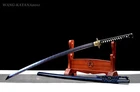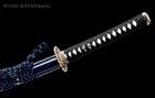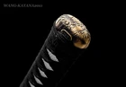 Product Parameter: Name: 残月 Numer: TYQ17 Material: Folded T10 steel by 15 times(32768 layers),Damascus folded steel,百炼钢 Overall Length: 103cm/40.6" Blade Length: 70cm/27.5'' Handle Length: 26 cm/10.24'' Blade Widdth: 3.2 cm/1.26'' Thickness: 0.7cm/0.28'' HRC(hardness): 58 Bo-Hi: Yes,with blood groove Samegawa: White rayskin Fittings: Brass, flower design Nakago: Full tang,2 mekugi Package Include: 1 sword + 1 bag Craft: Hand folded and forged, water quenching treatment, Electroplate color, Hand-polishing, etc. * The steel we use is not the normal steel with the truck or cars or other life electrics, the steel use for the blade contents much more carbon and the purity can not be comparable . It's a functinonal sword. After test, it can cut bamboo, A4 paper and water bottles,etc . Additional Service About us Sword Noun Explananation Delivery details Sword maintenance Additional Service It's free for engraving English words, Chinese Characters and Japanese Kanji , etc. You need pay extral $20-30 for engraving patterns. Sharpness Most of our blades are sharp. We can also make the blade unsharpened for free if you require. Matching Swords Set If you buy one katana, we can make a matching Wakizashi or Tanto for you. The price varies from different swords. Please contact us if you need make custom matching set. About us We have our own sword-casting factory. The factory is located in Longquan, a small town with a long history of sword-casting in China. Most of the famous Swords in China are made there. Rich raw materials, skilled technology, traditional sword casting technology from generation to generation. Manual production really takes a lot of time. We will prepare most products in advance ,and arrange delivery within about a week. However, sometimes the delivery time is delayed due to weather or raw materials,etc. we hope to get your understanding. Feel free to contact us to inquire about the status of your order. Each handmade sword is unique. Our swords are great for gifts or for your own collection. Our swordsmithing master makes every sword attentively, hope you can feel our sincerity. We will also give you the best customer service, any questions please feel free to contact us. Sword Noun Explananation Quenching After the blade has been shaped, the sword would be quenched. We quench our swords in either water or oil. Water quenching produces a tougher edge which can also be hardened further more using clay. Blades quenched in oil are still considerably hardened and do have superior flexibility compared to a water quenched blade. Folded Steel : In the forging process , the most useful process is the folding, where the metals are forge welded, folded, and welded again, as many as 124 times(15 times is the best). The folding removes impurities and helps even out the carbon content, while the alternating layers combine hardness with ductility to greatly enhance the toughness. The less impurities, the harder and sharper the blade will be. We have done cutting tests on the blades. it can cut bamboo(young bamboo tree), grass mattings and slice paper(The blade should be tilted at 45 degrees). Clay tempered : To maximize both the cutting edge and the resilience of the sword spine, a technique of differential heat-treatment is used.The sword is painted with layers of clay before heating, providing a thin layer or none at all on the edge of the sword, ensuring quick cooling to maximize the hardening for the edge.A thicker layer of clay is applied to the rest of the blade,causing slower cooling.This creates softer,more resilient steel, allowing the blade to absorb shock without breaking. About 1095 carbon steel : The best quality of high carbon steel is at 1095, the carbon content was 1.03%, and the element contains a small amount of chromium, molybdenum, vanadium, after heat treatment can reach HRc58-60 hardness, toughness is very good, but not resistant to rust, more be applied to traditional european-style hunting knife, large cutting knife and military dao. Such as the United States during world war ii "KA - BAR" saber is in 1095 as the blade material. Kobuse : The vast majority of modern katana and wakizashi are the maru type which is the most basic, with the entire sword being composed of a single steel. The kobuse type is made using two steels, which are called hagane (edge steel) and shingane (core steel). Steel of different materials is forged and welded together to hammer the basic shape of the sword. This allows the overall blade to have a higher toughness and absorb a lot of impact. Reducing the possibility of breaking or bending to some extent. Makes the blade not only has high hardness, but also has super toughness Delivery details a) Import duties, taxes and charges are not included in the item price or shipping charges . These charges are the buyer’s responsibility. b) If you do not receive the package, or the package is damaged during transportation. We'll take care of it. Please feel free to buy. c) If it is mentioned in the product description that the package includes the sword bag or sword holder , the style will be random. The sword holder or sword bag on the ebay picture is the props we use for shooting. If you really like a style, please contact us before buying. d) If you have any problem after recieve the package (wrong size, wrong style, etc.). We always provide you with the best after-sales service. Please give us a chance to help you before you give us a bad feedback . Thank you very much! Sword maintenance