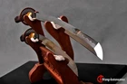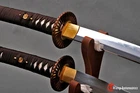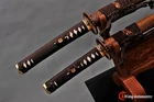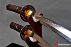 1)This sword was designed many years ago, now the Tsuba has been updated to black iron Tsuba . 2) The style of sword case and sword bag is random , if you want specific style, please contact us. 3) Wooden sword stands are not included! Package includes: 2 sword+2 bag+1 box+1 black sword stand+1 certificate. 4) If you are not sure whether the sword really as good as the pictures, we can take some photos to confirm your order before shipment. It's a free service. Product Parameter: Blade Material: Clay tempered T10 high carbon steel Blade HRC(hardness): 60 Bo-hi: No,without blood groove Seppa&Habaki: Brass Fuchi&Kashira&Menuki: Top grade Brass plated with real gold/silver Tsuba: Black Iron hand guard Samegawa: Genuine rayskin Blade Construction: Maru Ito: brown Japanese silk rope, Battle wrapped Blade Color: No color, the mirror effect is great! Scabbard: Natural rosewood saya ,beautiful wood grain,better texture Tang(nakago): Full-tang, 2 bamboo mekugi vertically fixed handle, very firm Craft: Fully hand forged with 12 procedures, Clay tempered, Oil Quenching, Mirror polishing,etc . Katana: Overall Length: 103cm/40.6" Blade Length: 70cm/27.5'' Handle Length: 26 cm/10.24'' Blade Widdth: 3.2 cm/1.26'' Blade Thickness: 0.7cm/0.28'' Wakizashi: Overall Length: 78cm/30.7'' Blade Length: 50cm/19.68'' Handle Length: 20 cm/7.87'' Blade Width: 3.2 cm/1.26'' Blade Thickness: 0.7cm/0.28'' * The steel we use is not the normal steel with the truck or cars or other life electrics, the steel use for the blade contents much more carbon and the purity can not be comparable. * They are functinonal swords. After test, you can use them to cut bamboo, A4 paper and water bottles,etc . * All the fittings can be replacement. Unsharpened blades are no problem. Tsuba & Fuchi & Kashira & Habaki Saya Additional Service About us Delivery details Tsuba & Fuchi & Kashira & Habaki Alloy Tsuba Iron Tsuba ( extra $10) Brass Set ( extral $50 ) Alloy Fuchi & Kashira Habaki TSUKA-ITO & SAGEO Tsuka-ito is the wrapping of the tsuka and sageo (下緒 or 下げ緒) is a hanging cord that is passed through the hole in the kurigata (栗形) of a Japanese sword's saya. SAMEGAWA Samegawa(鮫皮)is the ray or shark skin wrapping of the tsuka (handle/hilt). Saya Please contact us before placing an order to see if there is any stock available, as well as any additional charges. OX Horn Saya Additional Service It's free for engraving English words, Chinese Characters and Japanese Kanji , etc. You need pay extral $20-30 for engraving patterns. Hamon We can add or remove the machine-made wavy hamon for free. Bo-hi ( Blood Groove) Usually thought be used for bloodletting only. It is also used to lighten the weight of the sword. We can add or remove Bo-hi for free Sharpness Most of our blades are sharp. We can also make the blade unsharpened for free if you require. Colored Blade If you want to change to a different color blade, please contact us before purchase. Matching Swords Set If you buy one katana, we can make a matching Wakizashi or Tanto for you. The price varies from different swords. Please contact us if you need make custom matching set. About us We have our own sword-casting factory. The factory is located in Longquan, a small town with a long history of sword-casting in China. Most of the famous Swords in China are made there. Rich raw materials, skilled technology, traditional sword casting technology from generation to generation. Manual production really takes a lot of time. We will prepare most products in advance ,and arrange delivery within about a week. However, sometimes the delivery time is delayed due to weather or raw materials,etc. we hope to get your understanding. Feel free to contact us to inquire about the status of your order. Each handmade sword is unique. Our swords are great for gifts or for your own collection. Our swordsmithing master makes every sword attentively, hope you can feel our sincerity. We will also give you the best customer service, any questions please feel free to contact us. Delivery details a) Import duties, taxes and charges are not included in the item price or shipping charges . These charges are the buyer’s responsibility. b) If you do not receive the package, or the package is damaged during transportation. We'll take care of it. Please feel free to buy. c) If it is mentioned in the product description that the package includes the sword bag or sword holder , the style will be random. The sword holder or sword bag on the ebay picture is the props we use for shooting. If you really like a style, please contact us before buying. d) If you have any problem after recieve the package (wrong size, wrong style, etc.). We always provide you with the best after-sales service. Please give us a chance to help you before you give us a bad feedback . Thank you very much!