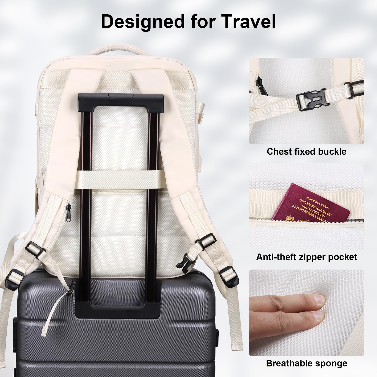 【Airplane Carry-On Backpack】Travel backpack size: 50x36x22cm/19.6x14.2x8.7 inches, suitable for carrying on top of or under the airline seat as a personal item. This extra large travel backpack meets the carry-on requirements of most airlines, such as Easy Jet, Spirit, Frontier, Jet Blue. The 180 degree zipper closure can help you pass through security check quickly. 【Large Capacity Backpack】40L large travel backpack has multiple compartments to meet 5-7 days of travel needs. Main pocket x1, laptop padded compartment x1 (can hold 17.3-inch laptop), wet bag x1, front zipper pockets x2, side pockets for water bottles or umbrellas, rear anti-theft zipper pocket for valuables like cell phones or cards, and other convenient inner pockets for travel essentials. These compact designs keep your items tidy and easier to find. 【Premium Material & Hands-Free Design】personal item travel bag is made of high quality fabric, which is water-resistant, wear-resistant and lightweight, equipped with sturdy SBS zipper, durable and long-lasting. Breathable adjustable shoulder straps, chest buckle and thick sponge back pad help relieve pressure on shoulders and back. The back trolley sleeve design can fix the backpack to the suitcase for convenient hands-free carrying, making travel easier. 【Equipped with USB Charging Port】This large carry-on backpack for men and women has a built-in USB charger on the outside and a built-in charging cable on the inside, the travel backpack provides you with a more convenient way to charge your phone while walking. Please note that the laptop backpack itself does not charge nor does it come with a power bank, the USB charging port only provides a convenient way to charge. 【Multi-Purpose Personal Items Backpack】The large backpack for men and women can be used in many different ways, can be used as an everyday backpack for college, travel backpack for work! You can also use it anywhere, such as international travel, college, camping, hiking, or business trip. It is the perfect gift for men and women who love to travel, and a great choice for Father's Day and back-to-college, Christmas or other holidays.