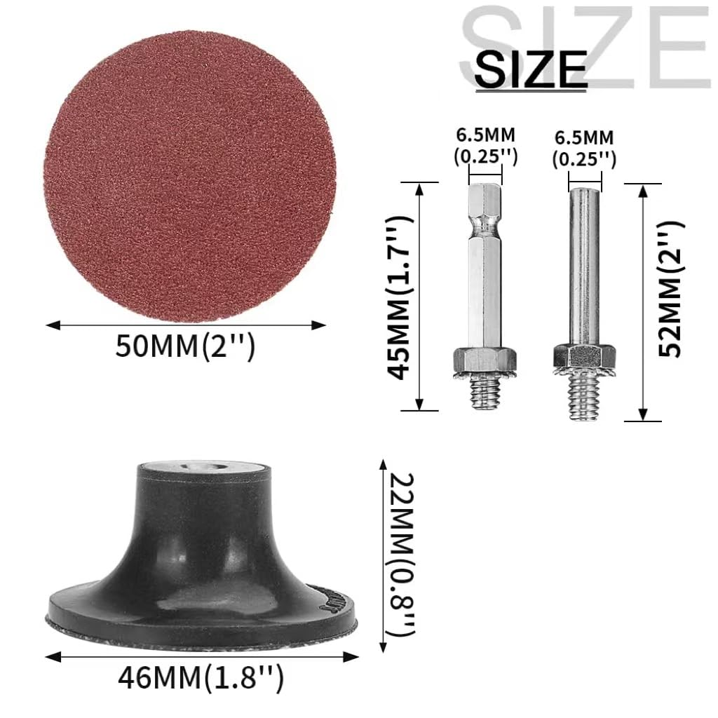 -Package contains 2inch Quick Change Discs Set 40/60/80/120 Grits each grit 10Pcs,With 1/4inch Hex Round Rod Rubber Holder -2 Inch Quick Change Sanding Discs made with premium Aluminium Oxide abrasive grains featuring Active Grinding Aid which prevents loading and reduces heat buildup. -Aluminium Oxide corundum abrasive grain has high abrasion resistance and hardness, and the surface is attached with thermal and blocking resistant coating, which can improve the grinding efficiency and service life. -Quick Change Sanding Discs Holder with 2 Pcs 1/4" shank, Round/Hex shank can use with any air or electric drill, die grinder, and other rotary tools for the utmost sanding control. -Ideal for metal processing, such as cars, motorcycles, painting sheet metal parts, instrumentation, bicycle parts, textile machinery, medical equipment parts, Day surface hardware, plumbing equipment, stainless steel utensils, stainless steel sheet, golf head, vacuum and other products finishing,rounding polishing etc. Features: -2 Inch Quick Change Sanding Discs made with premium Aluminium Oxide abrasive grains featuring Active Grinding Aid which prevents loading and reduces heat buildup. -Quick change disc has unique safety torque screw, strong wear resistance and fast grinding force. -Aluminium Oxide corundum abrasive grain has high abrasion resistance and hardness, and the surface is attached with thermal and blocking resistant coating, which can improve the grinding efficiency and service life. -2 Inch Quick Change Sanding Discs can meet the requirement of 23000Max. Rpm.Quick change disc Can Used for grinding welding seam and smoothing surface. -2 Inch Quick Change Sanding Discs Can grind high-quality metals, such as shipbuilding, car building, aviation, machinery and so on. All the abrasive cloth uses heavy cloth base, and attaches a high toughness cotton backing cloth on the back of the abrasive cloth, so that the abrasive dish is more elastic and suitable for plane and side grinding, and can also increase the plastic links on the back. Specification: -Colour: reddish brown -Material: alumina -Grit:40# 60# 80# 120# -Size:2 inches (50mm) -Holder Disc Shank Diameter:1/4inch Round & HEX Note: -Please allow 1-2mm errors due to manual measurement. -Item color displayed in photos may be showing slightly different on your computer monitor since monitors are not calibrated same.