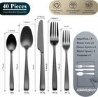 【Unique Matte Black Flatware Set】This black utensil set has a sleek silhouette with clean lines and mattes surface in all black standing out from the ordinary silverware, creating elegant and mysterious dining scenes. Each utensil has a medium weight that we think most people will find comfortable. There is no need to worry about fading or cracking, as this is a metal layer from vacuum plating technology. If you want to be different in tableware, you won’t miss it 【Healthy and Premium Stainless Steel Flatware Set】This kitchen utensils set is made of high quality food grade stainless steel which is very health, safety, durable,rust-proof, corrosion resistant, BPA-free, nickel-free and no metal aftertaste. Meanwhile, its sturdiness ensures that it will not bend easily providing you with long-term use. Hand washing is recommended, dry them before storing 【Excellent Workmanship Flatware】Multiple times of fine polishing gives EIUBUIE forks spoons and knives set smooth edge and no rough edges, very comfortable to use without hurting your mouth at all. Hand washing is recommended. Do not use steel wire brush, hard sponge, cleaning cloth or any other hard-material cleaning tools for cleaning to avoid damage to the cutlery 【Matte Black Flatware Set for 8】This black spoons and forks set includes 8 of each: Dinner Knives, Dinner Forks, Dinner Spoons, Salad/Dessert Forks and Dessert/Teaspoons, well packed in a nice cardboard box. It’s the ideal flatware set for home daily use, and also for restaurants, pubs, cafes, and hotels. This cutlery set also helps your dinner be full of design while having a party Product Dimensions 10.23 x 5.9 x 2.36 inches Item Weight 5.18 pounds Manufacturer EIUBUIE