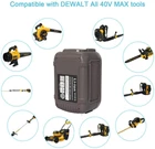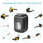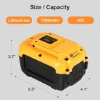 P ackage included: 1x 40V Li-Ion 7500mAh replacement battery for Dewalt DCB404 1X User Manual Item Specification : 1.100% new and high quality cells 2.Type: Lithium-Ion (Li-Ion) 3.Nominal Capacity: 7.5Ah/7500mAh 4.Model Number: DCB404 5.Nominal Voltage: 40V 6.Warranty: 5 Year Warranty + 30 Days Money Back 7.Compatible Brand: For Dewalt Features: 1.Compatible with all DEWALT 40V MAX tools and outdoor power equipment 2.Battery Type: Li-ion, Voltage: 40V, Capacity: 5000mAh,can be charged on dewalt all 40V Max Charger 3.High quality battery provides more capacity, more running time 4.LED indicator allows you to check the state of battery NOTE: 1.The battery must be FULLY charged before first use. 2. The battery is stored in a cool and dry place. 3. Do not Separation, extrusion, and impact. 4. Do not put battery into water and fire. 5. Keep away from children.