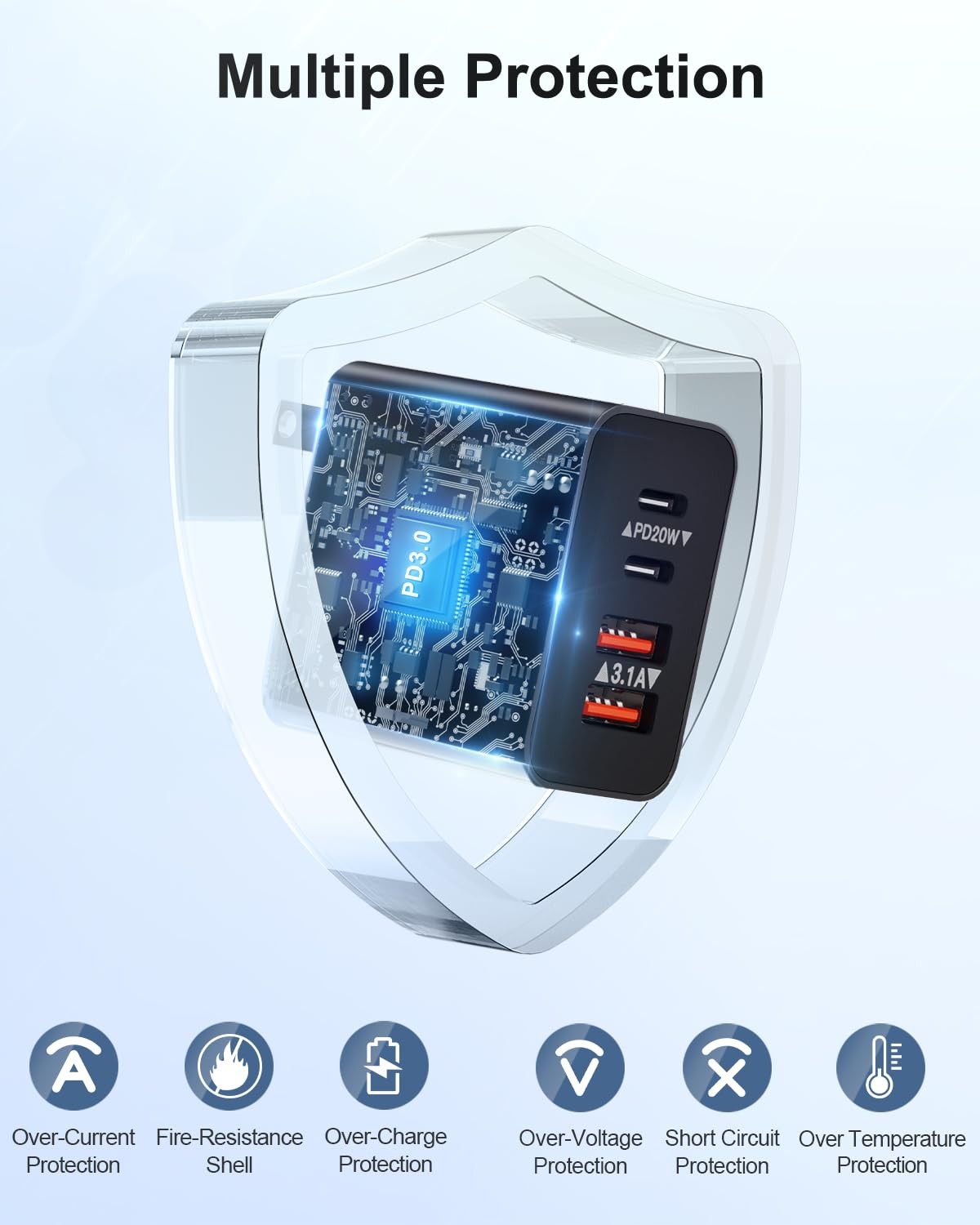 40W 4-Port USB C Wall Charger Fast Charging Block [3 Pack] - A Game-Changer for Multi-Device Users! Technical Specifications: Port: USB-C Port + USB-A Port Input: 100-240V~50/60Hz 0.8A USB-C Output: 5V=3.1A, 9V=2.22A, 12V=1.67A USB-A Output: 5V=3.1A Max What's in the box: 4 * 40W 4-Port USB Wall Charger - Black 1 * User Manual 3X Faster Charging USB Wall Charger Multiport iPhone charger block with PD 3.0 fast charging technology charges your iPhone 14 or the latest models up to 60% in just 30 minutes. 3X faster than 5W usb block. Compact Yet Powerful Wall Charger Block Lightweight and compact design ensures maximum portability wherever life takes you, convenient to use while travelling, at work, or at home. 3-PACK Fast Charging Block : The usb c charger supports the the PD 3.0 and QC fast charging functions with a total power of up to 40W. The USB-C port supports a maximum power output of 20W. Charge your iPhone devices from 0% to 60% in just 30 minutes USB C Wall Charger Multiport : Upgraded USB C Charger Block have Dual USB-C ports and Dual USB-A ports. Allow users to charge 4 devices simultaneously to minimize waiting time and serve as a great space saver. Say goodbye to your original usb charger Universal Compatibility : This usb c charging block is compatible with almost all electronic devices, charging adapter for iPhone 15/15 Pro/15 Plus/15 Pro Max/14/14 Pro/14 Pro Max/14 Plus/13/13 Pro/13 Pro Max/13 Mini/12/12 Pro/12 Pro Max/12 Mini/11/11 Pro/11 Pro Max/XS/XS Max/XR/X/8/8 Plus/7/7 Plus/6/6S/SE 2020, iPad Pro/Air/Mini, Galaxy S23/S22/S21/S20/S10/S9/S7/A12/A13/A22/A32/A52/A53/Note 20 10/Z Fold 3, LG, Google Pixel, Kindle, Tablets, Switch and more Safe and Reliable USB-C Plug : The type c charger block built-in safeguards protects your devices against short circuit, over-heating and over-charging. The usbc charging block will automatically stop charging when power is full to protect your device. Compact & Portable Design : Incredibly compact size for enhanced portability. All this power comes installed in a pocket-friendly compact body, to go wherever the journey takes you. Ideal for home, office and on the go What You Get : We provide this 3-Pack 40W 4-Port USB-C Wall Charger (Black) with 18 Months Worry-free Replacement and 24/7 Online Customer Service. If you have any problems, please contact us freely and we are always at your disposal