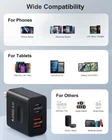 This charger is a must-have for anyone with multiple devices! The 40W output and four ports (USB-C and USB-A) make charging super fast and convenient. I love how compact it is—perfect for travel or keeping by the bedside. My phone charges in half the time, and I can power up my tablet and earbuds simultaneously. The build feels sturdy, and having three in the pack is a steal. No more fighting over outlets—this charger handles everything effortlessly!