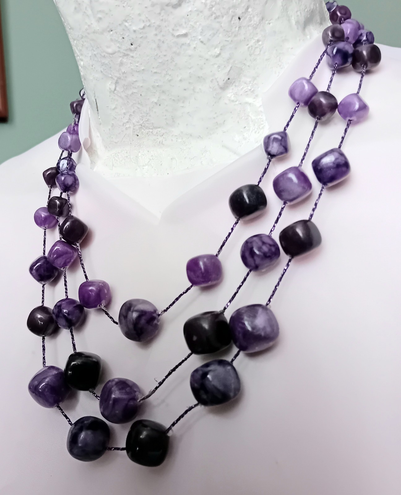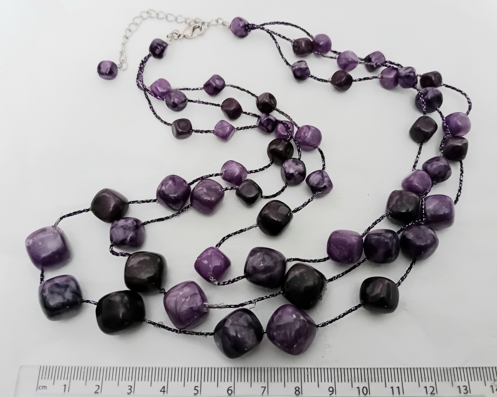 44cm Random Glass & Stone Charm Bead Necklace Blue Purple & Pink A280