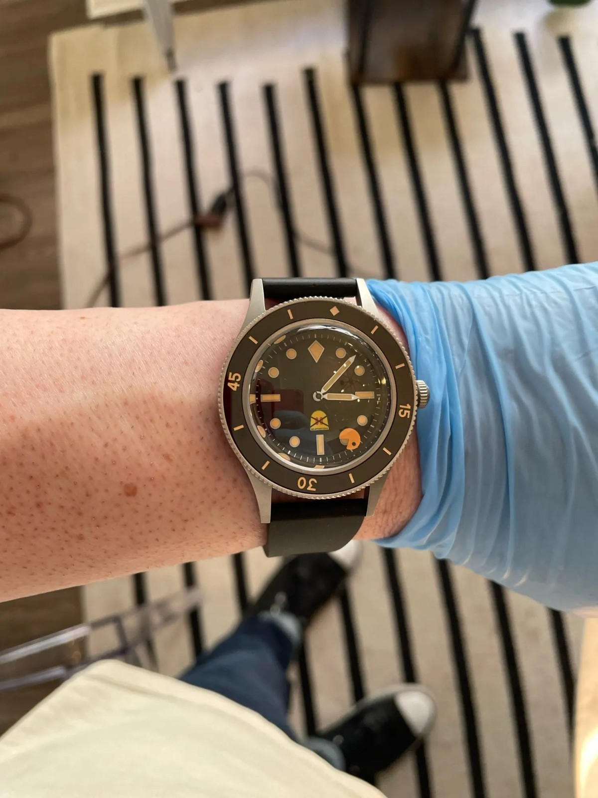 50 Fathoms Bronze Watch Case 40mm Fit NH35 NH36 ETA2824 PT5000 SW200 40mm Bronze Watch Case For NH35 NH36 ETA2824 PT5000 SW200 Bow Sapphire Glass Product Description Size: 40mm diameter without crown, 14 mm thickness Fit Dial: 27.1 mm-29.2 mm diameter Watch Band: 20 mm width Case material : 316L stainless steel case or bronze case ,ceramic bezel insert Glass : domed sapphire glass Lug to lug: 50.5mm Bezel insert: 37.8mm X 31.2mm ( outer diameter x inner diameter) Dial Size: 29 mm diameter. Dial : black dial , luminous markers Hands size: 8.5mm x 12.5mm x 12.5mm Notes 1-3cm size difference may occur due to manual measurements. Color may vary slightly based on lighting conditions. Please check your measurements before purchasing. Package Includes Selected Variation