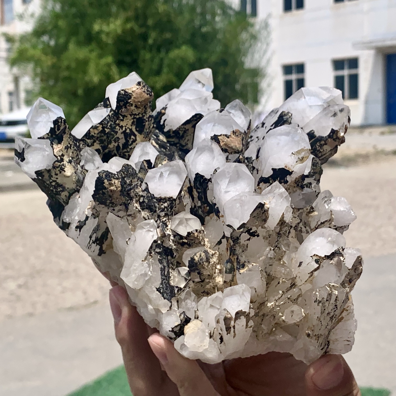 Absolutely stunning natural crystal specimen! The unique black mineral mud contrasts beautifully with the white crystal clusters, making it a perfect display piece. The size and weight feel substantial, and the details are even more impressive in person. Shipping was fast, and it arrived well-packaged. Highly recommend for collectors or anyone who loves natural mineral art!