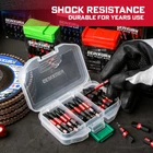 41Pieces Screwdriver Bit Set 1Inches Torx Bits (T7,T8,T9,T10,T15,T20,T25,T27,T30,T40); 1Inches Security Torx Bits (TT7,TT8,TT9,TT10,TT15,TT20,TT25,TT27,TT30,TT40); 2Inches Torx Bits (T7,T8,T9,T10,T15,T20,T25,T27,T30,T40); 2Inches Security Torx Bits (TT7,TT8,TT9,TT10,TT15,TT20,TT25,TT27,TT30,TT40); 1Pieces- 3Inches Impact Magnetic Screwdriver Bit Holder. Material: Advanced metallurgy hardened S2 alloy steel Shank: 1/4 in. hex Strong Magnetic Anti-impact and tough, great wear resistant. These impact tough bits are an impact rated line of screw driving bits and bit holders that have been enhanced to handled a new generation of higher torque impact drivers. Provide 10X longer bit life than standard impact bits. Impact Rated Screwdriver Bit Impact Shock Absorbent Zone stands up to punishment from high-torque impact drivers. Long-lasting engineered tips provide enhanced strength that can handled high-torque impact drivers, so it can tightening or loosening screws easier. TORX SCREWDRIVER BITS: 40 pieces T7-T40 multi star driver bits and 1Pc Bit holder with storage box, the box is customized for bits, you can take it easy to anywhere or hang it up when you don't use it IMPACT RATED BITS: Impact Shock Absorbent Zone stands up to impact drivers. It can be handled a new generation of higher torque impact drivers Quality Assurance: This batch of head made of S2 high quality steel material, it owns the features of high hardness and good toughness and resistance through strictly heat treatment, durable and suitable for any industrial use Precision Tips Head: Precision-engineered bit tips, deliver a better fit and less cam-out, each edge can accurately lock the screw, stabilizes without slipping and improves work efficiency. Avoid damaging the screw and screwdriver head Wide Range of Uses: Made to fit 1/4 In. hex impact drivers drill screw bit set is not only work with impact driver, but also magnetic screwdriver bit perfect for any regular drill, electric and hand screwdrivers, power drills, corded drills, cordless drills, cordless driver and more