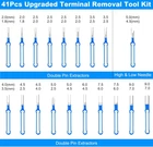 product Store Home Shipping Payment Warranty and Guarantee Other Policies Item Description Product Feature * Upgrade Terminal Removal Tool: With a robust 1mm thickness, our upgraded tool surpasses standard 0.6mm options, ensuring durability and eliminating concerns about bending or breaking. The improved long-handle design ensures a comfortable grip for effortless usage. *Comprehensive 41PCS Set: Receive a 41-piece electrical pin removal toolkit, featuring 14 single-pin pullers, 20 double-pin pullers, 1 triple-pin puller, 6 sleeve tools, and a protective bag for convenient storage and portability. * Easy and Damage-Free: No need to pry open the terminals, just push and pull the terminal pins. Our wire terminal release tool allows you to remove terminals from wire harness connectors and add new wires without compromising the original harness, maintaining factory integrity seamlessly. * Waterproof Protective Case: The depinning tool kit is sharp, so we carefully equip you with a safety case. It prevents children from playing with it and ensures that the tool is stored safely when not in use. At the same time, it is small and light, easy to carry. * Wide Application: Compatible with most connector terminals, our kit suits various applications—cars, home appliances, motorcycles, and more. Package Included * 41 x Terminal Removal Tools * 1 x Protective Bag Item Pictures More Shipping 1.We ship to worldwide,except Hong Kong,Taiwan,Macao,China,Guemsey,Puerto Rico and we do not ship to APO/FPO, etc. 2.Item will be shipped within 3 business day on payment received. 3.Items are shipped from China using Airmail,reach most of countries within 10-20 business days. 4.sDelivery time depends on destination and other factors,it may takes up to 20 business days. Payment 1.We accept Paypal only. 2.All major credit cards are accepted through secure payment processor PayPal. 3.Payment must be received with 7 days of auction closing 4.If you have bought multiple items from us,you can send us one payment for all the items instead of paying for them individually. When you click the Pay Now button,eBay will automatically determine if there are other items you have won of purchased from us and will combine them for your review. Warranty and Guarantee 1.One year warranty!30 days money back!Buy with confidence! 2.If you are not satisfied when you receive your item,please return it within 30 days for a replacement or money back.Please contact us before you return the item. 3.If item is defective in 3 months,we will send you a replacement without extra charger,or offer refund after we receive the defective item. 4.If item is defective after 3 months,you can still send it back to us.We will send you a new one after after receiving the defective item,but you have to pay the extra shipping fee. Other Policies 1.We are not responsible for any custom duty or import tax. 2.We will leave Positive Feedback after receiving the payment.Please contact us if you are not satisfied with the item after receiving it. 3.All emails will be answered within 1 business day.If you do not receive our reply,please kindly re-sent your email and we will reply you as soon as possible. 4.Serious Buyer Only!Please place bid only if you agree with all the terms.
