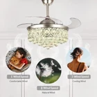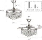 42" Crystal Ceiling Fan Indoor Light Remote Control Modern Silver LED Chandelier About this item ♥GORGEOUS FAN LIGHT:The design of the fandelier ceiling fan with light lamp body incorporates Nordic classical curve elements, making the chandelier ceiling fan more charming . When you look up at the retractable ceiling fan with lights, you will be amazed by the sparkling crystal ball. retractable ceiling fan is absolutely stunning. ♥INVISIBLE FAN BLADES: ABS clear blades will automatically shrink when the chandelier fan is turned off, leaving only a elegant crystal chandelier. fan and chandelier can be controlled separately. ♥REMOTE CONTROL: Chandelier with fan has 3 color changes ( 3000k-warm, 4500k-neutral, 6000k-white ), 3 speeds (low-mid-high), timer setting(1/2/4/8 hours). All functions of fandelier ceiling fan can be controlled by remote control in any corner of the room. ♥SIZE: Ceiling fan chandelier Diameter 42'' when opened and 19'' when closed. Modern ceiling fan comes with 4'' and 8" down rods , Vertical height 19"/23". 42 inch modern ceiling retractable fandelier is suitable for ceilings of different heights. ♥SILENT MOTOR : The pure copper motor of crystal ceiling fan with lights has a longer service life. Fan chandeliers for bedrooms provides super airflow to cool down quickly and has no noise, giving you a quiet and comfortable environment. Product Description Modern Crystal Ceiling Fan with LED Light It’s time to replace the old fan in your house. Crystal chandelier fan will surely bring you surprises. Applicable area:100-300 sq.ft. Gorgeous Silver Chandelier Ceiling Fan and Remote You can easily control all functions with the remote control. Material: K9 Crystal+ Metal+ ABS Blades Top K9 Crystal High Quality Metal Lamp Body Clear Blades Exquisite Brushing Process Smart Fandelier Chandelier with Silent Motor and Timer Bling fan lights provide installation videos and instructions for quick installation. Professional installation recommended. Size 42”*42”*19” (L*W*H) Wind Speed 3 Speeds Light Source LED Strip (Include) Finish Types Brushed Payment Delivery details Return Contact us About us Payment 1.We accept PayPal,G Pay Credit Card,Visa ,etc. payment. 2. Please make payment within 4 days after placing an order, or eBay will automatically open an unpaid case on the fourth day. 3. You can contact us for sure if you want to cancel the order to avoid the unpaid case. Delivery details Your goods will be shipped within our handling time after your full payment. Pls note that we don't ship to Alaska, Hawaii and Puerto Rico.APO/FPO’s address. Return We accept return within 30 days, but we are not responsible for human damage.The return shipping cost is the buyer's responsibilities and try to keep it in your original package. Contact us If you have any questions please contact us through "Ask seller a question" link. We will respond within 2 business day or less. About us We are committed to providing you with a comfortable home and by functional and beautiful ceiling fans and lighting fixtures. As a professional modern lighiting fixture supplier, our team has more than 15 years Ceiling fan and lighting production experience. We are not only committed to produce high-tech, stylish, safe and high quality LED products, but also provide our professional and efficient after-sales service, making your lighting experience more pleasant and comfortable.