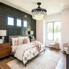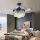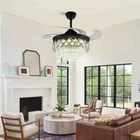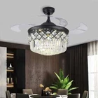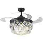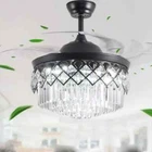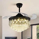 42" Crystal LED Chandelier Ceiling Fan with Lights Retractable Pendant Fandelier