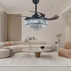 42” Fandelier Ceiling Fans Lights with Remote, Modern Black Crystal Chandeliers Feature: Color: black Lamp body material: K9 crystal, High-quality metal Fan blade material: ABS Lamp body diameter: 19inch Fan opening size: 42inch, height 19.7 inch( with shorter rod) Control: Remote Control Lighting: 3-Color LED(36W) Fan speed: 3 Voltage: 110V About this item ❤ Modern invisible fan chandelier: Fan and chandelier combined into one with remote control, automatic telescopic fan blade, LED lamp beads. ❤ Control mode: with remote control, LED light plate three-tone light (white light, neutral light, warm light) LED light plate wattage (36W), lumen (3500lm), airflow (CFM) wind flow in 5000CFM. ❤ Lampshade material: Iron + crystal (4 layers in total),Derrick size: 10cm/4 in, 20cm/7.87 in (each/can be installed according to the needs of the length of the derrick), suction disk size: 15cm/5.90 in (diameter) after installation size: 107cm/42 in (diameter after fan blade expansion) *48cm/19 in (height) or so. ❤ Bedroom Ceiling Fans Material: metal body + acrylic lamp cover + ABS retractable blades + pure copper motor(providing powerful air flow, quiet and durable. With vents, it can reduce the internal temperature of the main unit and extend the life of the motor.) ❤ Widely Use:This indoor ceiling fan can use for kid’s room,living room, bedroom, dining room, foyer, corridor, office, kitchen, restaurant. Payment Delivery details Return Contact us About us Payment 1.We accept PayPal,G Pay Credit Card,Visa ,etc. payment. 2. Please make payment within 4 days after placing an order, or eBay will automatically open an unpaid case on the fourth day. 3. You can contact us for sure if you want to cancel the order to avoid the unpaid case. Delivery details Your goods will be shipped within our handling time after your full payment. Pls note that we don't ship to Alaska, Hawaii and Puerto Rico.APO/FPO’s address. Return We accept return within 30 days, but we are not responsible for human damage.The return shipping cost is the buyer's responsibilities and try to keep it in your original package. Contact us If you have any questions please contact us through "Ask seller a question" link. We will respond within 2 business day or less. About us We are committed to providing you with a comfortable home and by functional and beautiful ceiling fans and lighting fixtures. As a professional modern lighiting fixture supplier, our team has more than 15 years Ceiling fan and lighting production experience. We are not only committed to produce high-tech, stylish, safe and high quality LED products, but also provide our professional and efficient after-sales service, making your lighting experience more pleasant and comfortable.