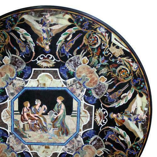 $ 1161.3548-inch Handmade Marble Table Top with Semi-Precious Stone Pietra Dura Inlay Decor