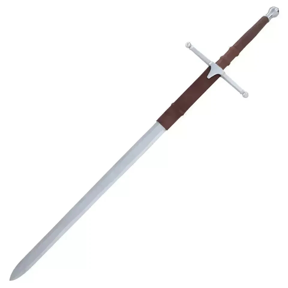 Reclaim your freedom with the authentic "Braveheart" William Wallace Cosplay Sword by Whetstone. The claymore features a polished stainless-steel double-edged blade, the hilt and pommel are composed of metal, and the handle is wrapped in leather. The fantasy sword comes complete with an authentic rough leather sheath that includes a strap to attach this 40.75-inch sword to your belt. Highlights This Scottish claymore sword is a replica of the sword William Wallace fought with in the movie Braveheart, making it a great collector's item The knight sword features a polished stainless-steel double-edged blade, the hilt and pommel are composed of metal, and the handle is wrapped in leather The crusader sword comes with an authentic rough leather sheath that includes a strap to attach this 40.75-inch-long sword to your belt This claymore sword makes the perfect gift for both movie lovers and medieval weapons enthusiasts alike for birthdays, anniversaries, weddings, and more Materials: Stainless-Steel, Metal, and Leather Dimensions: (L) 40.75-inches; Blade: (L) 29.5-inches Color: Silver with Brown Leather