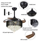 42" Invisible Crystal Ceiling Fan Light Retractable LED Chandelier Lamp w/Remote 42" Black Crystal Ceiling Fan Chandelier Remote LED Retractable Ceiling Fixtures Features Modern invisible fan chandelier: Fan and chandelier combined into one with remote control, automatic telescopic fan blade, LED lamp beads Ceiling fan with remote: Dimmable LED lights have 3 color changes (White-Warm-Yellow), Fan has 3 speed settings (Low-Mid-High). All these functions can be easily controlled by remote Modern Fan Light Chandelier: 42 inches when the fan is extended, and 19 inches when the fan blade is retracted. Includes two lower bars, one for 3.9 inches and the other for 7.8 inches, you can choose one to install Bedroom Ceiling Fans Material: metal body + acrylic lamp cover + ABS retractable blades + pure copper motor(providing powerful air flow, quiet and durable. With vents, it can reduce the internal temperature of the main unit and extend the life of the motor.) Pattern Name:Stripe What you get: Retractable ceiling fan x 1 Screws sets x 1 Down rods x 2 (10CM & 20CM) Remote control x 1 Instruction Manual x 1 Installation Instructions: Ceiling Chandelier Suitable for Flat Roof Concrete Ceiling House, for Gypsum Board and Wood Ceiling, You Need to Buy a Remodeling Bracket; Identify and Connect Electrical Wires; Ceiling height is greater than 110", Lift 110 Pounds. Payment Delivery details Terms of sales About us Contact us Payment We accept ebay payment 。 Fees such as import duties, taxes are not included in the item price or shipping costs. These charges are the buyer's responsibility. Delivery details Shipping: 2-9 working days to: USA Terms of sales We maintain high standards of excellence and strive for hundred percent customer satisfaction. Feedback is very important to us. We hope that you contact us immediately before you give neutral or negative feedback, so that we can address your concerns. It is impossible to address issues if we do not know about them! About us Your satis faction is our ultimate goal. We work hard to earn your trust and future business. Our certified technicians have tested each item before shipping. The unit comes with 1 year limited warranty on all manufacturing defects. a) If you receive a defective item, you may return it or ask for a discount. Please contact us within 14 days after you receive the package. b) What you returned must be intact and in its original packaging as re? u. Customer is responsible for shipping costs of the returned item. c) We will cover the cost of shipping back t with the shipping rate indicated in the registration page. We will send you a new unit or refund the full payment you paid. Thank you. Contact us Business Hour Business Hour: Monday To Friday: 8:30 AM to 5:00 PM (Beijing China time) Due to time zones, our reply to your questions may not be immediately. But within above working time, we will reply your email within 24 hours. If it's non-workdays, please kindly be patient and wait till Monday. Please contact us with ebay message. Please feel free to contact us if you have any questions. Monday To Friday: 8:30 AM to 5:00 PM (Beijing China time) Due to time zones, our reply to your questions may not be immediately. But within above working time, we will reply your email within 24 hours. If it's non-workdays, please kindly be patient and wait till Monday. Please contact us with ebay message. Please feel free to contact us if you have any questions. Type Chandelier MPN Does Not Apply Brand Unbranded Style Modern Material ABS, Acrylic, Crystal, Metal Features With light, Remote Control Room Bar, Bedroom, Dining Room, Hallway, Home Office/Study, Kitchen, Living Room, Playroom Lighting Technology LED Manufacturer Warranty 3 years Voltage AC 110 -120 Volts Average Service Life 5~10 Years Dimensions 42 Inch, 4 Retractable Blades Light source type LED(Light Kit Included) UL Listed Quality Guarantee Yes Motor Wattage 56W Light Wattage 36W Number of Speeds 3 Color Temperature CCT Dimmable (3 light cycles) Sensor Type None Light Color White-Warm-Yellow Department Adults Control Style Remote Control Included Shade Shape Round Power Source Corded Number of Settings 3 Finish Antique Chrome Energy Star 3 Stars LED String/Strip Type WS2811 EC Range A++ - G Color Black Installation Area Indoor On Jan 14, 2025 at 22:09:46 PST, seller added the following information: