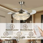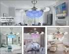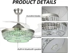 42" Smart Dimmable 7-Color Chandelier Crystal Ceiling Fan w/Bluetooth Speaker Product Feature Diameter: 19’’(blades close)/ 42’’(blades open) Lampshade height: 6.7’’ Rods length: 4’’ / 8’’ Color: Silver Weight: 24lb(11kg) Material: Iron canopy&down rods&motor/ABS blades/Crystal lampshade Style: Luxury&Modern Function: Reversible blades&Bluetooth speaker&7 Dimmable LED light&Remote control Control: Remote Control or APP control(dimmable LED light) Light source type: LED dimmable light Voltage: 110V Power: 36W Irradiation area: 160-220 sq ft. Applicable space: living room, bedroom, study room, dining room, hallway, hotel room, exhibition hall, warehouse and so on. Note for App operation Scan the QR code on the Bluetooth installation manual on your mobile phone to download the APP. If you need to control multiple color changes, please disconnect the Bluetooth connection with your mobile phone first, and then directly connect to the Bluetooth in the app to control the color changes. Light source: LED lamp piece colorful dimming (" colorful "refers to the meaning of colorful) LED lamp piece wattage (36W), lumen (3500lm), air flow (CFM) in 5000CFM Control mode: Frequency conversion can be reversed, with remote control (six gears and six speeds) Mobile phone scan code in the package of Bluetooth "two-dimensional code" on the installation manual to download APP, mobile phone can play music, mobile phone control lighting Note When installing, cleaning the chandelier and replacing the lighting, the power must be cut off. We recommend installing the ceiling fan by a professional electrician. If there is any loss or damage during transportation or installation, you can contact us anytime, we’ll help you solve the problems to your satisfaction. Payment Delivery details Terms of sales About us Contact us Payment You could make payment via: Delivery details Packages will ship via by UPS or USPS within our handling time,once the package is shipped out ,normally shipping takes about 3-10 working days,but due to different cities and states,shipping time will be different. Terms of sales If you any problem about shipping information, or the item you got : Arrived damaged; Wrong item sent; Missing parts or pieces; Doesn't work or defective; Doesn't match description or photos. Pls click "Contact Seller" and send us message firstly. Then we could have a check and will take responsibility to resolve the problem with you in good communication. About us Our company specializing in selling all kinds of light fixtures,such as ceiling fans,chandeliers,crystal lights,retro lamps,pendant light,etc. If there's any light fixture you are interested,pls feel free to contact us for more details. Contact us Normally your message will be replied in 1 business day,If after 24 hours you do not receive our reply,please kindly re-send us the message,because sometimes ebay message system will have technical problem,so your message can't send to us successfully.