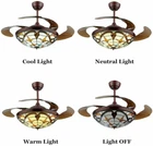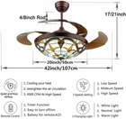 Details: Color: As pictures shows Fan Expanding Size: Diameter 107cm /42inch Down rod:10cm/3.93inch,20cm/7.87inch Ligthing source: LED light panel board(Included) Voltage:110V Wattage: 36W Material: Metal/ Acrylic / Blade ABS Switch: Remote Control Light color: White,neutral,warm light(Change by remote) Fan speed: L-M-L Superior features: no radiation, no flicker, no glare, no dark areas, green, low emissions, 50000h life, low power consumption. Applicable: living room, bedroom, restaurant, etc. Packaging details 1 * fan light pack in foam carton box. Suggestion: Ceiling bearing ≥25KG Floor height ≥ 2.6cm Installation By A PROFESSIONAL ELECTRICIAN Assistant after sales: For any question or installation methords about the light fixture,pls contact us via ebay message firstly for help.