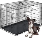 42-Inch Two-Door iCrate Folding Dog Crate with Divider Panel, Leak-Proof Tray