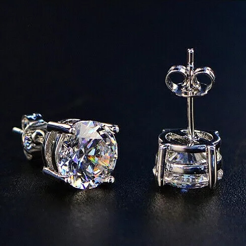 $ 101.327 Ct Certified Round Cut White Diamond Solitaire Studs In 925 Sterling Silver