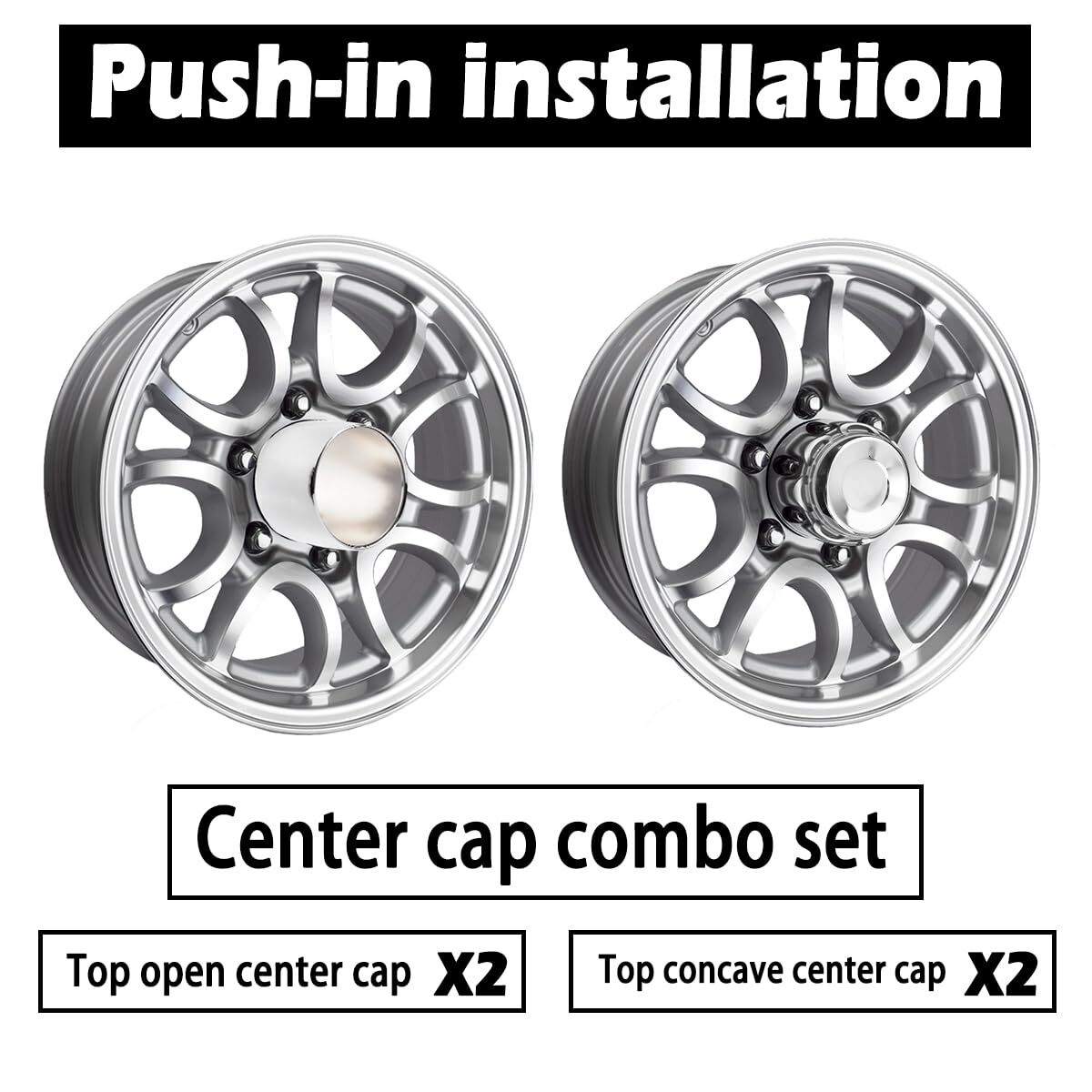 4Pcs 4.25inch Trailer Wheel Center Caps Push Through Center Hub Cap for Truck SUV RV Wheel Rim, Combination of Concave and Open End Chrome Wheel Hub Covers Size: A set of 2 concave wheel center caps and 2 open wheel center caps, each with a mounting diameter of 4.25 inches, a height of 4.33 inches for concave hub caps, and 4.27 inches for open hub caps. If you are unsure of the size of the center hole, please use a digital caliper to check. For the diameter model of the wheel center hub cover, the parameter error is less than 0.5 mm, and the fitting is successful. Wide car compatibility: Fits 4.25" centre holes only. This is a replacement wheel centre cap for trailer, truck, SUV or caravan wheels. Please make sure the wheel cover fits your wheels. Make your vehicle stand out and be instantly recognisable on hiking and camping trips! Premium quality: The trailer wheel centre cap is made from carbon steel and chrome plated. Scratch resistant, durable and smooth to the touch. The centre hub cap creates a special focal point on the wheel and the elegant design enhances the style and appearance of your car. Easy to install: Push through the centre cap and the cap is installed from the back of the wheel, quick and easy to install. Replace your old damaged or peeling wheel centre caps and give your car a new look. Use these wheel covers to quickly and effectively improve the appearance of your car. Wheel upgrade: Push-on hubcaps effectively block mud, sand, dust and other debris from entering the wheels, reducing dirt build-up in the wheel area. Keeps wheel hubs free from wear and damage, making the vehicle smoother and more stable for off-roading, wading and other wilderness adventures. 4 Custom Wheel hub Caps made by SKU: 20274310CHx1-RH Rim Cap Diameter: 4.25" Height: Concave 4.33", Open 4.27" Material: Carbon Steel Finish: Chrome Installation: Cap installs from back of wheel (Push through) Condition: New Fits: These Wheel Caps Fit 4.25" Center Bore Only Please Use Digital Caliper Check the Center Bore Size if you are not sure Shipping We offer FREE shipping on all orders! We ship within Three business days of payment, usually sooner. We use a selection of shipping services such as UPS, FedEx, USPS etc. We only ship to the lower 48 states, no APO/FPO addresses or PO Boxes allowed. Local pickups and combined shipping options are not provided at this time. Return You can return a product for up to 30 days from the date you purchased it. Any product you return must be in the same condition you received it and in the original packaging. Please keep the receipt. Payment We accept payment by any of the following methods: PayPal Please pay as soon as possible after winning an auction, as that will allow us to post your item to you sooner! Feedback Customer satisfaction is very important to us. If you have any problem with your order, please contact us and we will do our best to make you satisfied. Contact Us If you have any queries, please contact us via ebay. We usually respond within 24 hours on weekdays. Please visit our eBay store to check out other items for sale! Thank you for shopping at our store.