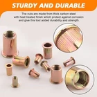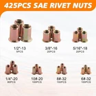 About the Rivet Nut Set 860pcs carbon steel flat head threaded metric rivet nut,make of high quality carbon steel.Rivet nuts provide strong fastening threads in thin panels. They create a strong thread in thin sheets of material for high strength fastening from bolts and other threaded articles.Rivet nuts can be made from stainless steel, Monel, and brass. However, the most popular material is zinc-plated steel since it is proven effective. Specification: Material: Carbon Steel, Zinc Plated Color: Yellow Quantity: 425pcs Type: Flat Head, Knurled Body Package: Adjustable Plastic Box Package Includes: 6#-32 x 100pcs 8#-32 x 100pcs 10#-24 x 100pcs 1/4"-20 x 80pcs 5/16"-18 x 20pcs 3/8"-16 x 20pcs 1/2"-13 x 5pcs [425PCS SAE UNC RIVET NUTS]: All rivet nuts are sorted and placed in the grid, and you can quickly find the nuts you need according to the label prompts. Inudes: 6#-32 x 100pcs, 8#-32 x 100pcs, 10#-24 x 100pcs, 1/4"-20 x 80pcs, 5/16"-18 x 20pcs, 3/8"-16 x 20pcs, 1/2"-13 x 5pcs. [WIDELY USE]:SAE rivet nuts are widely used in automobile, furniture, decoration, electrical appliances and industrial products, suitable for various occasions, can be used in air conditioning, fire, gas, etc., also can be used in medicine, beverage, food, chemical and sheet metal industries. [STURDY AND DURABLE]: The rivet nut is made from thick carbon steel with heat treated finish which protect against corrosion and give this tool added durability and strength [RUGGED CARRYING CASE]: The rivet nut set comes with a tight and durable case, which is easy to carry and keep! [Service ]: If you are not satisfied with the rivet nuts set for any reason, please feel free to us directly, we will help and provide or .