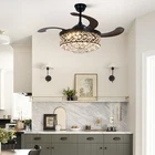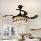 $ 76.5542" Crystal Ceiling Fan Light Remote LED Chandelier Retractabl Blades Fandelier