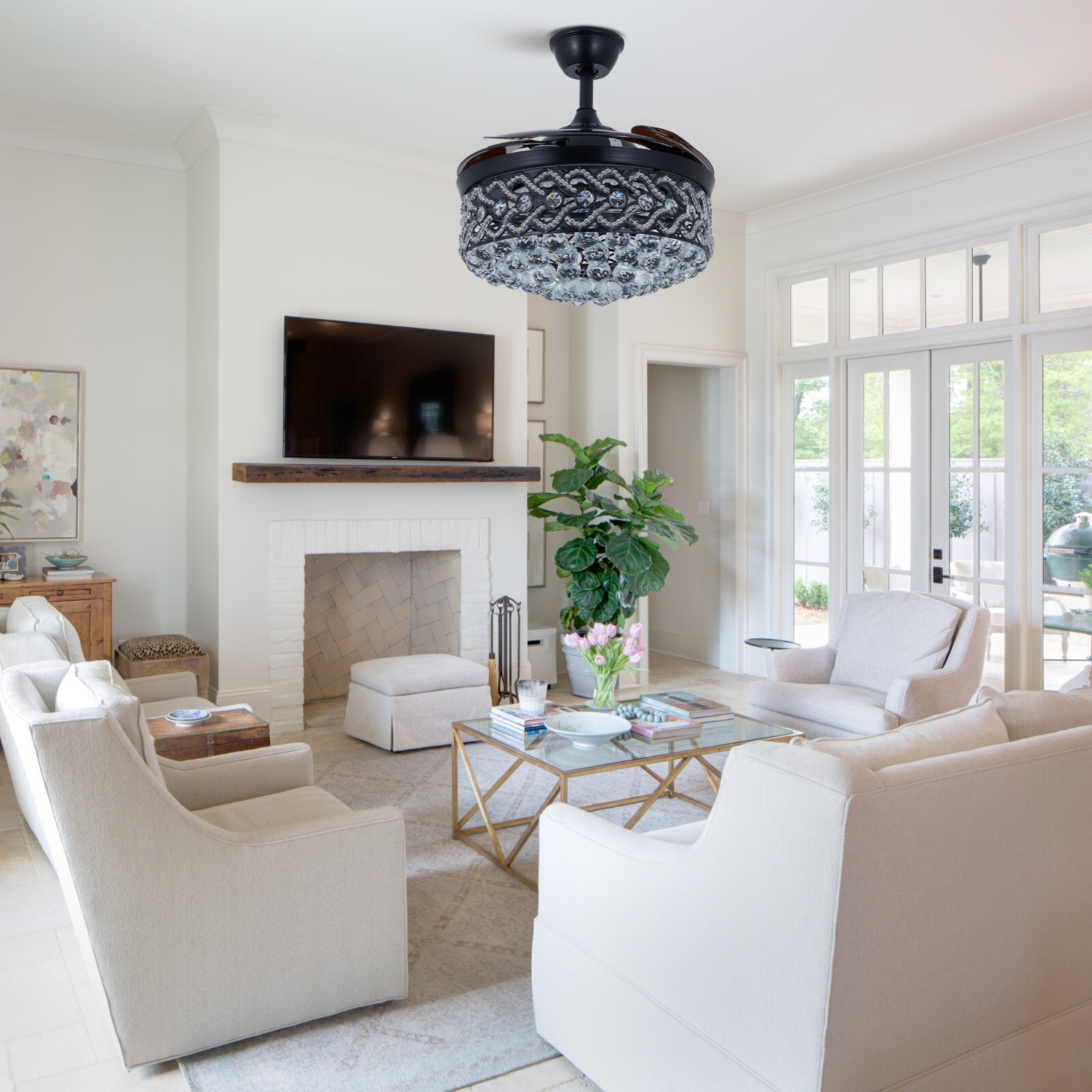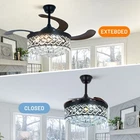 42" Black Crystal Chandelier LED 3-Color Light Remote Retractable Ceiling Fans Specifications Size: 42*42*19 inch / L*W*H , Diameter 42” Style: Modern, luxury Main Body Color: A grade black plating Shade Material: K9 Crystal Power Switch: remote control Materials: Aluminum house, copper motor, acrylic blades, crystal lampshade, metal frame Two downrods: 4”/ 7.8” included Fan speeds: 3 types (Low-Mid-High) Light color: 3 color changes (Cool-Neutral-Warm) Type of Light Source: LED lighting board (Included) Voltage: 110V Watt: 36w Applicable: 10-25 m² living room, bedroom, dinning room, office room, restaurant, kitchen, lobby, foyer, bars, cafes, shops etc.. Suggestions: 1、Package comes with 2 downrods 4” / 7.8” for choosing, downrod customized service is free. 2、Floor height is greater than 110 inches, ceiling load greater than 20kg. Note: 1、This fan needs basic assembly skill, professional would be highly recommended. 2、If you receive damaged and defective product, please contact us timely and we will handle them immediately. Warranty ★60 days manufacture defective and 30 days unsatisfied return or replacement service. We’re dedicating your 100% satisfaction! Payment Delivery details Terms of sales About us Contact us Payment You could make payment via: Delivery details Packages will ship via by UPS or USPS within our handling time,once the package is shipped out ,normally shipping takes about 3-10 working days,but due to different cities and states,shipping time will be different. Terms of sales If you any problem about shipping information, or the item you got : Arrived damaged; Wrong item sent; Missing parts or pieces; Doesn't work or defective; Doesn't match description or photos. Pls click "Contact Seller" and send us message firstly. Then we could have a check and will take responsibility to resolve the problem with you in good communication. About us Our company specializing in selling all kinds of light fixtures,such as ceiling fans,chandeliers,crystal lights,retro lamps,pendant light,etc. If there's any light fixture you are interested,pls feel free to contact us for more details. Contact us Normally your message will be replied in 1 business day,If after 24 hours you do not receive our reply,please kindly re-send us the message,because sometimes ebay message system will have technical problem,so your message can't send to us successfully.