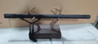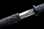 40'' Black Dragon Sharp Straight Ninja Sword 9260 Spring Steel Japanese Ninjato DESCRIPTION: Swordsmith: 吉久正一 It's a real functional and sharpened sword. After the tests, the sword is sharp enough to cut bamboo, branches, water bottles, and slice paper, etc. Overall Length: 42.5''/ 108cm Blade Length: 28.4''/ 72cm Handle Length: 12.24''/ 31cm Blade Width: 1.26''/ 3.2cm Blade Thickness: 0.2''/ 0.4cm Bo-hi: No blood groove Hardness(HRC): 56 Blade material: 9260 Spring steel Saya: Wood saya + PU leather Fittings: Alloy, black dragon design Package include: 1 sword + 1 random bag Usages: cutting practice, collections, good gifts, home decoration, self-defence, cosplay, etc. Note About us Sword Noun Explananation Delivery details Sword maintenance Note 1) We have already sent this item to the warehouse in America in advance. It's the lowest price we've ever had, and it's the lowest price on eBay . American customers can receive the packages 1-7 days after placing an order. 2) Because the item is already in the warehouse in the United States, we are sorry that we cannot add free carving service & replacement parts service for the moment. 3) We have free return service. If you don't like anything after you receive the package, we will bear the loss of return. Please feel free to buy. About us We have our own sword-casting factory. The factory is located in Longquan, a small town with a long history of sword-casting in China. Most of the famous Swords in China are made there. Rich raw materials, skilled technology, traditional sword casting technology from generation to generation. Manual production really takes a lot of time. We will prepare most products in advance,and arrange delivery within about a week. However, sometimes the delivery time is delayed due to weather or raw materials,etc. we hope to get your understanding. Feel free to contact us to inquire about the status of your order. Each handmade sword is unique. Our swords are great for gifts or for your own collection. Our swordsmithing master makes every sword attentively, hope you can feel our sincerity. We will also give you the best customer service, any questions please feel free to contact us. Sword Noun Explananation Quenching After the blade has been shaped, the sword would be quenched. We quench our swords in either water or oil. Water quenching produces a tougher edge which can also be hardened further more using clay. Blades quenched in oil are still considerably hardened and do have superior flexibility compared to a water quenched blade. Folded Steel: In the forging process , the most useful process is the folding, where the metals are forge welded, folded, and welded again, as many as 124 times(15 times is the best). The folding removes impurities and helps even out the carbon content, while the alternating layers combine hardness with ductility to greatly enhance the toughness. The less impurities, the harder and sharper the blade will be. We have done cutting tests on the blades. it can cut bamboo(young bamboo tree), grass mattings and slice paper(The blade should be tilted at 45 degrees). Clay tempered: To maximize both the cutting edge and the resilience of the sword spine, a technique of differential heat-treatment is used.The sword is painted with layers of clay before heating, providing a thin layer or none at all on the edge of the sword, ensuring quick cooling to maximize the hardening for the edge.A thicker layer of clay is applied to the rest of the blade,causing slower cooling.This creates softer,more resilient steel, allowing the blade to absorb shock without breaking. About 1095 carbon steel: The best quality of high carbon steel is at 1095, the carbon content was 1.03%, and the element contains a small amount of chromium, molybdenum, vanadium, after heat treatment can reach HRc58-60 hardness, toughness is very good, but not resistant to rust, more be applied to traditional european-style hunting knife, large cutting knife and military dao. Such as the United States during world war ii "KA - BAR" saber is in 1095 as the blade material. Kobuse: The vast majority of modern katana and wakizashi are the maru type which is the most basic, with the entire sword being composed of a single steel. The kobuse type is made using two steels, which are called hagane (edge steel) and shingane (core steel). Steel of different materials is forged and welded together to hammer the basic shape of the sword. This allows the overall blade to have a higher toughness and absorb a lot of impact. Reducing the possibility of breaking or bending to some extent. Makes the blade not only has high hardness, but also has super toughness Delivery details a) If you do not receive the package, or the package is damaged during transportation. We'll take care of it. Please feel free to buy. b) If it is mentioned in the product description that the package includes the sword bag or sword holder, the style will be random. The sword holder or sword bag on the ebay picture is the props we use for shooting. If you really like a style, please contact us before buying. c) If you have any problem after recieve the package (wrong size, wrong style, etc.). We always provide you with the best after-sales service. Please give us a chance to help you before you give us a bad feedback . Thank you very much! Sword maintenance