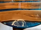 Table Size: 42"x42" Inches Experience the pinnacle of craftsmanship with our Handmade Wood and Epoxy Resin Trading Desk, designed to enhance your workspace with a blend of modern elegance and artisanal quality. Each desk is crafted from premium Walnut wood, enriched with vibrant pigments that create a stunning visual effect. The result is a unique, functional work of art that serves as both a statement piece and a practical surface for your trading or gaming needs. Key Features: Premium Materials: Our desks are crafted from high-quality wood and epoxy resin, combining durability with artistic beauty. The rich texture of the wood is accentuated by the glossy resin, making each desk a one-of-a-kind masterpiece. Customizable Options: Choose from a variety of stand colors, including Black, Silver, or Golden, to perfectly complement your interior decor. Additionally, we offer customization for size and shape, allowing you to create a desk that fits your exact specifications. Contemporary Design: The resin river design adds a contemporary touch to your space, ensuring your desk stands out as a unique focal point in any room. Perfect Gift Idea: This desk is an ideal gift for those who appreciate exceptional craftsmanship and modern design. Its stylish appearance and functional design make it a thoughtful and impressive gift. Live Edge Detail: We use the finest live edge wood slabs, sourced from both domestic and exotic species, ensuring each desk has a natural, organic feel. The live edge detail adds a rustic charm, making each piece truly unique. UV Resistant Resin: The high-quality resin used in the tabletop not only enhances the beauty of the desk but also offers exceptional strength and durability. It’s UV resistant, ensuring that the vibrant colors and glossy finish will last for years to come. Ordering Information: Made to Order: Each desk is meticulously handcrafted upon order, ensuring a personalized touch and the highest attention to detail. Worldwide Shipping: We offer global shipping, with buyers responsible for any applicable customs and import taxes. Please note that due to the use of raw wood, each desk may vary slightly from the one shown in photos, adding to its uniqueness. Thank you for visiting!