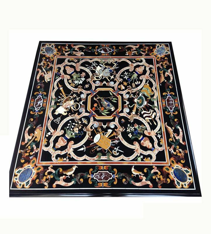 48-inch Marble Table Top with Handcrafted Floral Pietra Dura Stone Inlay