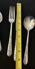42pc Oneida Community Bridal Wreath Tudor Plate Silverplate Flatware 1950s 8 Dinner Forks 8 Dinner Knives 8 Dinner Gumbo Spoons 16 Dessert Spoons Teaspoons 1 Butter Knife 1 Sugar spoon Good vintage condition. Normal signs of wear and aging. Minor scratches, patina throughout and some minor discolorations. Please study pictures carefully before purchasing Feel free to ask us any questions. Thank you for visiting our store! Bag77A