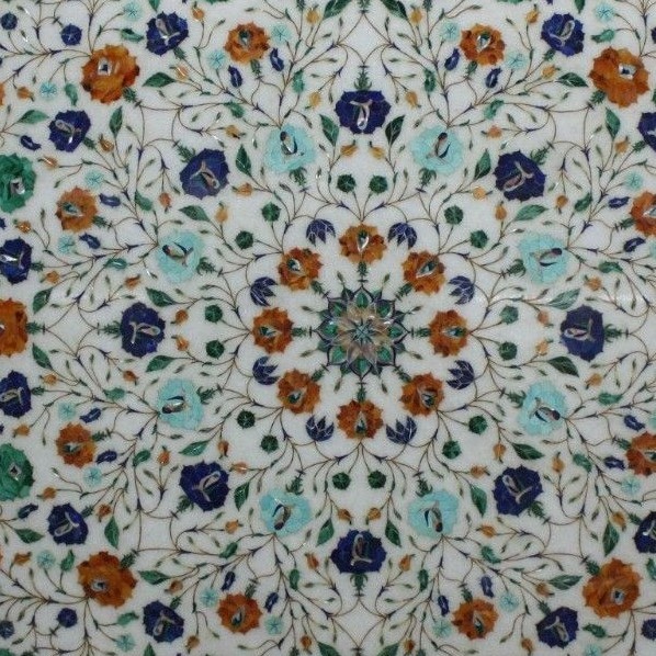 What is Inlay Art? One of the most attractive work of art that comes from marble is"Marble Inlay" work. It is the same work that adorns the Taj Mahal and other Mughal monuments. It is a closely protected traditional art and only a few expert exponents are available today. The delicate process involves cutting and engraving marble shapes manually. To start with, a predefined pattern e.g., floral design or geometrical design is engraved on the marble slab. Small pieces of marble of different shades are cut delicately to fit in these grooves precisely. These small pieces are then slipped in the grooves. Apart from marble, many other materials can also be used. History Of Inlay Art Inlay work on delicate precious stone began in the workshops of Florence in Italy around the end of the 16th century. This was known as PIETRA DURA.(Pietra= Stone, Dura= Hard) The Italians had created a classic artistic form and held a monopoly over it. From 1630 onward pietra dura appeared on movable, small objects as decorative panels, with bird and flower motifs, suitable for cabinet fronts and table tops. Some of these soon reached the Mughals in the form of presents. Of all the Mughal Emperors, Shah Jahan was the greatest patron of architecture in India. For him no amount of money or time was too much to create enduring, everlasting architectural beauty and through it be remembered always. It is in his buildings that one feels most compelled to make the connection between Mughal art and pietra dura. The Taj Mahal, the cenotaphs of the Emperor and his wife, the main floor and the surrounding marble railings bear very close resemblances to the pietra dura form. Process of Marble Inlay Art Master Craftsman carefully plans a design, which is etched lightly into the marble surface and later scored out with an iron chisel. Many of the tools of the trade are basically the same as those used by the Mughals hundreds of years ago. He then decides on the colour scheme depending on the requirements of piece being created. Semi-precious stones and gems are expertly chosen to give just the right graduation in colour and shade for the overall radiance of the pattern. They are shaped and polished by means of an emery wheel. Sometimes heat treatment is applied to certain stones to get a shading effect. The effort involved in making just one single flower can often take days of work, depending on the detail; it is not unusual to be designed from hundreds of different slices of stone. There are many varieties of coloured stone available for utilisation in marble inlay work: malachite, cornelian, jasper, mother of pearl, abalone shell, lapis lazuli, agnate, coral, turquoise and tiger eye to name just a few. The grooves are filled with their precisely corresponding shapes of coloured stone and secured in place with a white putty made from oil, and wax. Once the design is completely dry, the piece is polished with a mixture of sand, water and emery paper to give a shiny smooth finish. Note:- Customs Duty and other duties levies in destinations country are responsibility of the buyer