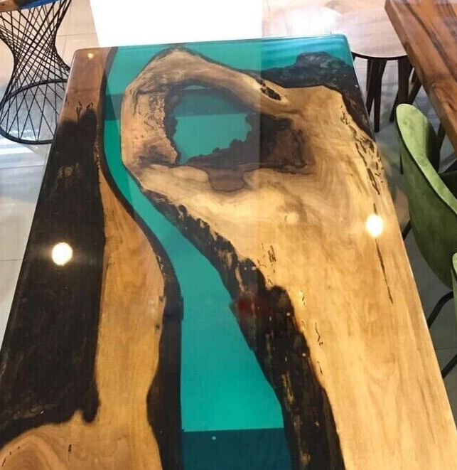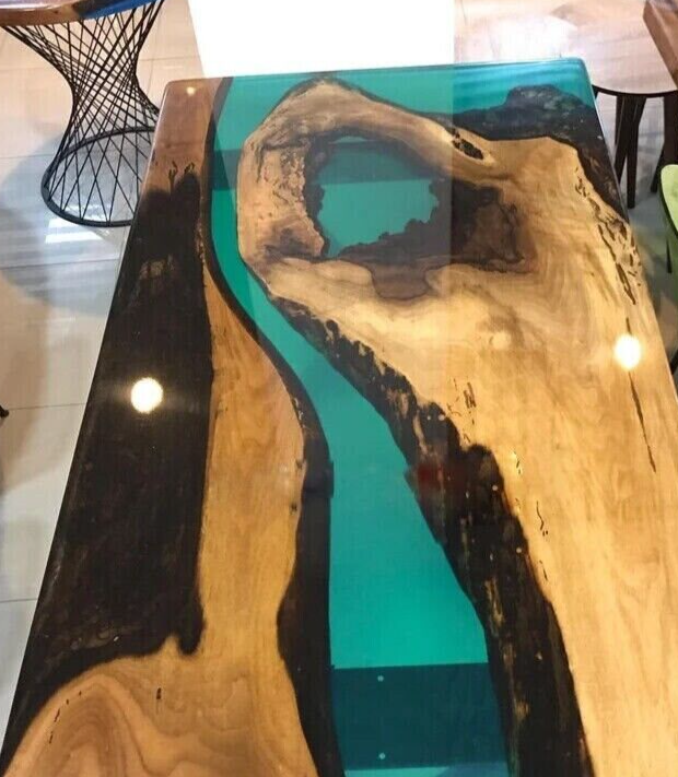 $ 2676.3280x40 Blue Wave Epoxy Resin Dining Table Handmade Furniture Wooden Live Edge Dec