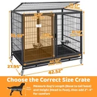 【Triple Door Design for Easy Access】The 43-inch dog crate features a triple door design, allowing your pet to enter and exit effortlessly from the top, side, or front, creating a comfortable and convenient living environment. 【Safe Auto-Lock for Peace of Mind】Equipped with a secure auto-lock system, the dog crate door ensures a firm and reliable closure, preventing accidental escapes and providing comprehensive safety for your pet. 【Dual Bowl Design for Easy Feeding】The crate comes with two 304 stainless steel feeding bowls, sturdy and easy to clean, allowing your pet to enjoy delicious meals anytime, anywhere, and making it convenient for you to provide timed and measured food. 【Lockable Casters for Easy Mobility】The bottom is equipped with lockable casters, allowing you to easily move the dog crate to any corner of your home. When you need to fix its position, simply lock the casters to ensure the crate remains stable and secure. 【Modular Stackable Design for Space Saving】The dog crate features a modular stackable design, which can be used individually or stacked easily, creating more possibilities for your home space, especially suitable for multi-pet households. 【Premium Safe Materials for Health and Environmental Protection】Our dog crate is made of premium safe materials, providing a safe, comfortable, and healthy living environment for your pet, giving you peace of mind, assurance, and convenience. Stackable with Dog Crate: Size:42.5" x 28" x 35"; Side Bar spacing: 1.15"; Floor Grid Bar Space: 0.38"; Ideal for breeder/Pet grooming/home use/etc; Includes: 1 x 43 inch Dog Crate, 4 x lockable Casters, 2 x Feeding Bowls, 2 x Metal Floor Grids, 1 x Tray, 1 x Divider, Screws and Latches (ONLY STACKABLE WITH DG-43-S, DG-43-T) Large Dog Crate or Two Small Crates: Designed for flexibility, this dog crate features a detachable divider, allowing you to transform one large space into two separate sections—perfect for multi-pet households or growing puppies. Plus, the two included bowls come with adjustable height settings, ensuring a comfortable feeding position from puppy to adult Expandable Play Space: Our dog cage medium/large sized dog system easily expands the play area, ideal for multiple or active dogs. It provides designated spaces for rest, feeding, and different developmental phases, offering a comfortable environment for breeding and play. The inclusion of two kennels indoor allows for even more expandable configurations Superior Security: The escape proof heavy duty dog crate for medium/large dogs of automatic door locks and an additional latch mechanism ensure your pets remain safely inside. The auto-lock engages upon door contact, with an extra lock pretent strong and clever pets from escaping Effortless Access and Feeding: With two front doors and a top opening, plus two adjustable stainless steel bowls, feeding and interacting with your pets is straightforward and efficient. The bowls of metal dog crate can be positioned to match your pet's various growth periods, ensuring convenience Flexible Mobility: The dog crates for large/medium dogs is fitted with four 360° rotating, lockable wheels, making it easy to move and secure in any part of your home. This feature is ideal for both pet owners and professional breeders who need adaptable positioning. Provides additional flexibility in arranging your space Simplified Cleaning: The cages for dogs includes paw-friendly METAL floor grids and removable leak-proof trays, making cleanup hassle-free and maintaining a sanitary environment. Its rust-resistant construction adds to the ease of maintenance and longevity. Space-Saving Design: Innovative design allows for stacking with the same or compatible models up to 2 tiers (43SS) or 3 tiers (43TTS), optimizing your space usage. This is perfect for groomers, veterinarians, and multi-dog households, offering a customizable and efficient setup. With two dog cage, you can stack or connect them for enhanced flexibility What your dog wants to say: My dearest master, when you thoughtfully prepared a dog crate for me, I may feel anxious and fearful due to the unfamiliar environment at the first time. Please put my favorite toy in the heavy duty dog crate and leave the door unlocked first. I will be very grateful to my dear master for such a warm and safe private area when you leave home for work