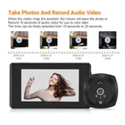 Feature: 1. Supports video recording and taking pictures, and the 4.3-inch high-definition display makes the image clearer. 2. 2MP professional security camera, 160-degree wide angle, provides high-definition large-view images to protect home safety. 3. Built-in 2 infrared lights, super night vision function, you can clearly see the visitors outside the door even at night. 4. Support PIR motion detection function, more accurate and sensitive recording of visitors. 5. The doorbell has a Do Not Disturb function. When you want to take a nap or sleep in peace, turn on DND and the doorbell will not ring. 6. The outdoor Door Viewer camera has a pry‑proof design to prevent deliberate damage and protect family safety. 7. 4 kinds of music ringtones can be selected, and multiple languages can be selected, which is more user-friendly and more practical. 8. Photo And Video: Support Motion Detection: Support Product Specification: A、 Indoor unit: 135*76*15.5MM B、 Outdoor unit: 62*62*15MM C、 Door opening range: 15—38MM D、 Door thickness range::30-110MM E、 LCD screen:4.3” F、 Camera pixels:200W G、 Lithium battery:2500MAH 3.7-4.2V H、 Picture and video specifications:1080P I、Memory Card: Maximum support TF card 32G (Not Included) How to Use: 1. Connect the indoor unit and outdoor unit through a cable 2. Press the outdoor unit bell button and the indoor unit will start ringing 3. You can set ringtones, etc. on the indoor unit Package List: 1 x Indoor Display 1 x Outdoor Camera 1 x USB Charging Cable 1 x Metal Hanging Board 1 x Screw Pack 1 x Manual