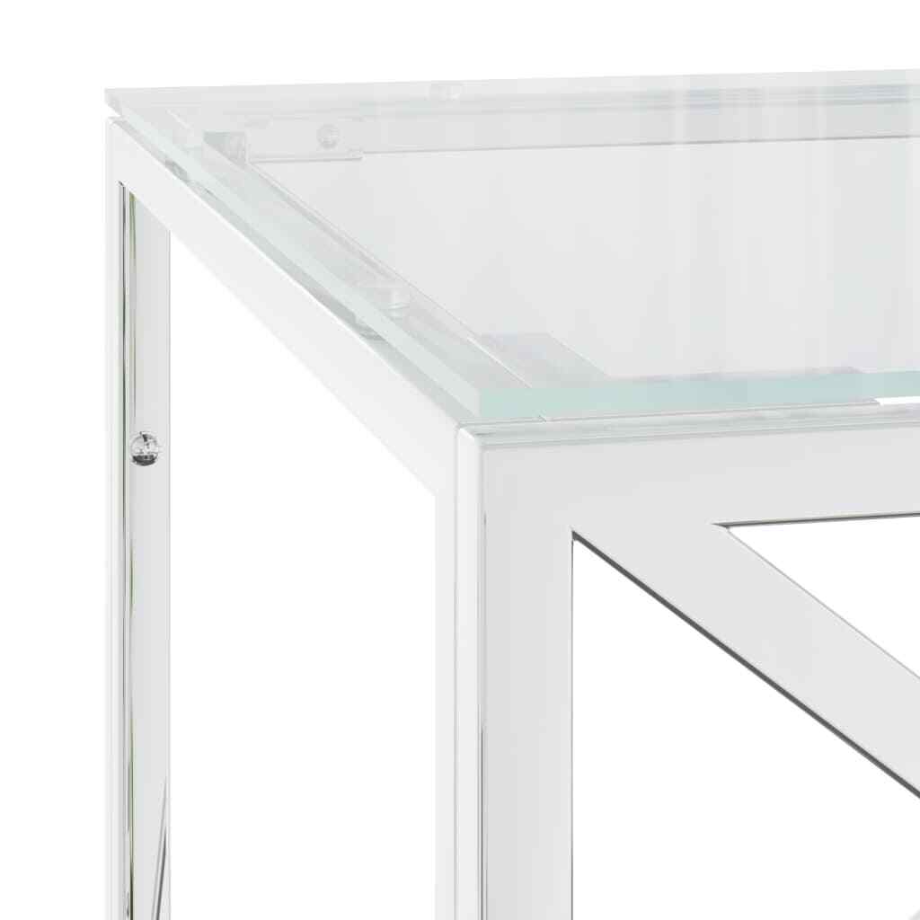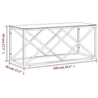 Combining functionality and beauty, this coffee table will be the focal point of your room. Durable material: Stainless steel is sturdy and durable for long-term use. It also has good resistance to rust. Smooth table top: The smooth glass table top is easy to clean with a damp cloth and is perfect for placing food, drinks and other decorative items. Wide applications: This side table can be used as a couch table, end table or living room table. Frame color: Silver Material: Stainless steel, tempered glass Dimensions: 43.3" x 17.7" x 17.7" (W x D x H) Table top thickness: 0.16" Assembly required: Yes California Proposition 65 Warning: Cancer and Reproductive Harm – . Shipping Restrictions Due to the limited access of our couriers, this item cannot be delivered to the following locations: Alaska Federated States of Micronesia Guam Hawaii Marshall Islands Military Posts (APO / FPO) Palau Puerto Rico US PO BOX Virgin Islands Our customer support will contact buyers for orders with no shipment service, and these orders will be cancelled and fully refunded afterwards.