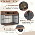 44'' Heavy Duty Large Dog Crate Furniture with Lockable Wheels, Double Storage Features Furniture-Style Design: The dog crate combines the beauty of furniture with the practicality of a pet house, making it a perfect addition to any home decor. It can be used as a dog crate, dog kennel, or even as a stylish end table, offering a comfortable and cozy space for your dog while enhancing the aesthetics of your living space. Sliding Door Design & Space Saving: The sliding barn door is designed to allow for easier entry and exit for dogs, with a lock for security. When in a small space, you don't have to worry about the door of the dog cage not being able to open fully. Ample Storage: Double layer desktop offers ample space to showcase your small or medium plants, magazines, family picture frames, and lots of pet supplies without cluttering up your home. Strong Construction: The cage body adopts a stronger steel tube structure, ensuring its long-lasting durability. The surface is smooth and non-toxic to prevent dogs from chewing. Lockable Wheels: Dog crate furniture is equipped with lockable wheels, you can easily pull or press their tails to make them movable or unmovable. They can also rotate 360 degrees, making it easy to move the cage around your home. Choose the Right Size: Choosing the right size dog crate is critical to ensuring your dog's safety and comfort. Our dog crate is suitable for medium dogs up to 90 LBS. And it's heavy enough that you don't have to worry about the dog crate tipping over. Descriptions Description Introducing our Furniture-Style Dog Crate, a blend of elegance and functionality perfect for any home. Its stylish design seamlessly integrates with your decor, doubling as a dog crate, kennel, or chic end table. The sliding barn door ensures easy access while maximizing space efficiency. With ample storage on the double-layer desktop, it accommodates plants, magazines, and pet supplies without clutter. Crafted with a robust steel tube structure, it guarantees durability and safety, while lockable wheels provide mobility and stability. Choose the right size for your medium-sized dog, up to 90 LBS, ensuring both comfort and security. Features Product Type Dog Cage Material Engineered Wood + Steel Color Brown Weight Capacity 150 LBS Assembly Time 0.5 hour