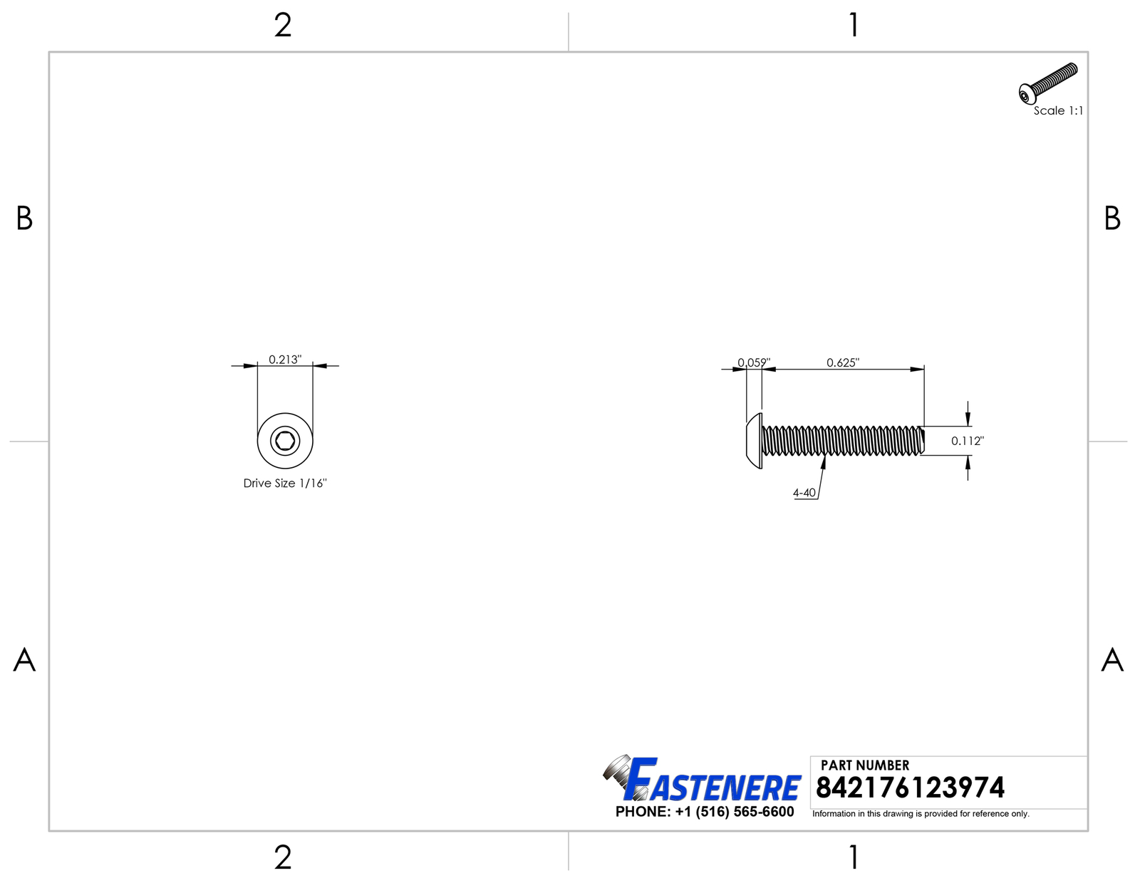 4-40 x 5/8" Button Head Socket Cap Screws Black Oxide Alloy Steel Qty 500 General Product Information Head Style : Button Drive Style : Allen Hex Key Drive Size : 1/16" Thread : 4-40 Length : 5/8" Quantity of Fasteners in Package : 500 Material Type : Alloy Steel Grade Rating : 8 Detailed Product Information: Head Diameter : Head Height : 0.059" Thread Diameter : 0.112" Threads Per Inch (TPI) : 40 Coarse or Fine Thread : Coarse Thread Coverage : Full Thread Thread Length : 0.63 Key Notes: Button socket cap screws have a wide bearing surface and high tensile strength but are low profile allowing for clearance in tight spaces where there is not sufficient space for wrenches or sockets button head cap screw is recommended for lighter fastening operations and is not suggested for use in critical high strength applications where socket head cap screws should normally be used Black oxide is not a coating but a surface chemical conversion process that offers a mild corrosion resistance Fastenere black oxide button head socket cap screws are treated with a heavy water displacing oil that coats the fastener offering a greater level of corrosion resistance than most other black oxide fasteners These button cap screws are a grade 8 equivalent offering a high tensile and yield strength These fasteners have a machined thread pattern of 4-40 which is apart of the unified thread system Shipping: All orders placed before 3:30 pm EST Will Ship Same Day Tracking is provided on ALL Orders Priority Mail Shipping service is offered at a discount of only $3.95 UPS Ground UPS Next Day Air is available, Please inquire for pricing Returns : ALL returns are accepted if returned within 60 days. Money Back or exchange guaranteed. NO Restocking Fees. For YOU, we constantly strive to find ways of improving our performance.