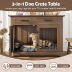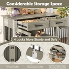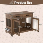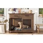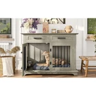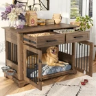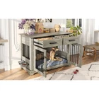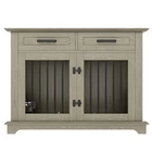 44.48" Large Dog Crate Furniture, Gray Wooden Dog Kennel End Table with Storage Drawers & Rotating Bowls Elevate your home decor while providing a cozy, secure space for your furry friend with this 44.48" large dog crate furniture! Boasting a sleek gray finish and a modern design, this piece seamlessly blends into any home style—whether it’s your living room, bedroom, or entryway—doubling as a functional end table or bedside table that adds both charm and utility to your space. 360° Rotatable Feeding Bowls for Convenience : Equipped with two 360° rotatable dog bowls, this crate offers unmatched flexibility for mealtime. The bowls can be mounted either inside or outside the crate, allowing your pet to eat comfortably from any angle. Cleaning and refilling are a breeze too, making daily feeding routines simpler and enhancing your pet’s dining experience. Ample Storage & Display Space : The spacious tabletop is perfect for showcasing potted plants, photo frames, magazines, or other decorative items, keeping your essentials within easy reach. Below the tabletop, two large drawers provide generous storage room for dog food, treats, toys, leashes, and other pet accessories—keeping your home neat and organized. 4-Lock Security System for Maximum Safety : Designed with your pet’s safety in mind, the dual front doors feature two reliable locks, complemented by two internal push-button locks to prevent your pet from pushing the doors open. This enhanced security system ensures your dog stays safely inside when needed, giving you complete peace of mind. Durable & Chew-Resistant Construction : Crafted from heavy-duty MDF wood and thick iron bars, this furniture-style dog crate is built to last. It’s more sturdy and chew-resistant than ordinary kennels, able to withstand the wear and tear of daily use as your dog grows, making it a long-term investment for your pet’s comfort. Spacious Room for Medium to Large Dogs : With overall dimensions of 44.48" L × 23.62" W × 34.56" H and interior dimensions of 40.55" L × 21.25" H × 23.62" W, this crate provides ample space for your medium to large dog to stand, turn around, and lie down comfortably. Please confirm the dimensions to ensure a perfect fit for your pet before purchasing. Product Specifications : Net Weight: 98 LBS; Weight Capacity: 176 LBS; Material: MDF; Assembly Time: 1 hour; Color: Gray. Package Dimensions: 49.80" L × 28.94" W × 8.15" H; Package Weight: 109.13 LBS. Worry-Free Purchase Guarantee : We stand behind the quality of our dog crate furniture with a 1-Year Warranty. If you’re not completely satisfied with your purchase, we offer a 30-Day Free Return & Exchange Policy. Shop with confidence knowing your satisfaction and your pet’s comfort are our top priorities!