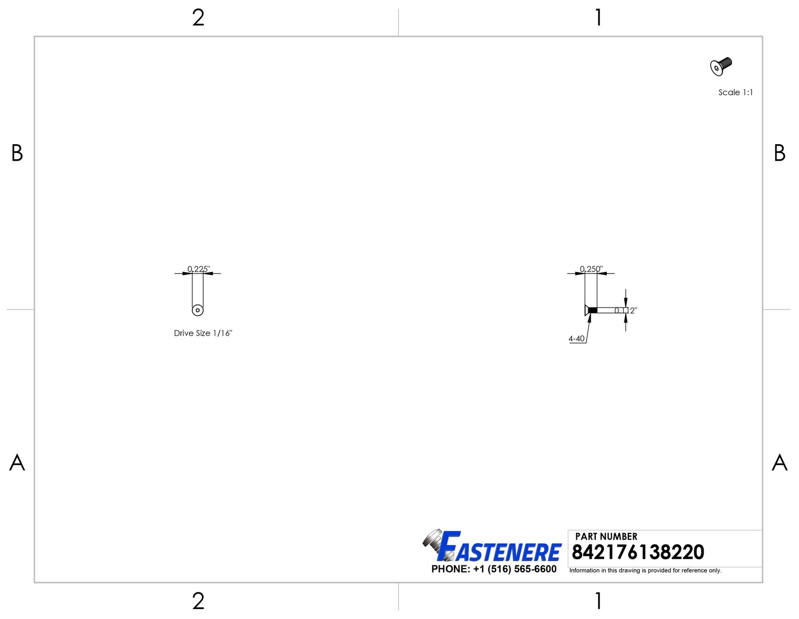 4-48 x 1/4" Flat Head Socket Cap Screws Grade 8 Steel Black Oxide Qty 500 General Product Information Head Style : Flat Drive Style : Allen Hex Key Drive Size : 1/16" Thread : 4-48 Overall Length : 1/4" Thread Coverage : Full Thread Thread Length : 0.25 Quantity of Fasteners in Package : 500 Material Type : Alloy Steel Grade Rating : 8 Detailed Product Information: Head Diameter : Head Height : 0.083" Countersink Angle : 82 Degree Thread Diameter : 0.112" Threads Per Inch (TPI) : 48 Coarse or Fine Thread : Fine Key Notes: Flat head socket cap screws have a internal hex drive that can be driven with an allen key or hex bit and a machine thread that will match up to any internally threaded item with the same machined thread patern which is apart of the unified thread system Flat head screws have a flat top that tapers down to a cone shape that will sit flush into a countersunk hole and give a finished appearance and an 82 degree flat head which is the most common countersunk screw head angle These flat socket cap screws are a grade 8 equivalent offering a high tensile and yeild strength Black oxide is not a coating but a surface chemical conversion process that offers a mild corrosion resistance Fastenere brand black oxide flat head socket cap screws are treated with a heavy water displacing oil that coats the fastener offering a greater level of corrosion resistance than most other black oxide fasteners Shipping: All orders placed before 3:30 pm EST Will Ship Same Day Tracking is provided on ALL Orders Priority Mail Shipping service is offered at a discount of only $3.95 UPS Ground UPS Next Day Air is available, Please inquire for pricing Returns : ALL returns are accepted if returned within 60 days. Money Back or exchange guaranteed. NO Restocking Fees. For YOU, we constantly strive to find ways of improving our performance.