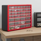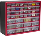 HEAVY DUTY CABINET WITH 44 DRAWERS: The 44-drawer small storage cabinet is made in the U.S.A. from rugged, high-impact plastic and measures 20" W x 6" D x 16" H; Organizer drawers - 6" x 4-1/2" x 2-3/16" (large); 6" x 2-1/4" x 1-5/8" (small) GARAGE ORGANIZATION: The small parts organizer is great for garages and workshops for both homeowners and businesses; The plastic storage drawers can be used as tool box, screw organizer or for battery storage; Keep nails and other small parts accessible CLASSROOM ESSENTIALS: Teachers can use the stackable storage drawers for classroom organization; Use it as a teacher toolbox, art supply storage organizer, craft storage cabinet for scrapbook supplies, and more HOME STORAGE AND ORGANIZATION: This plastic storage cabinet offers many uses around the home; It can be a lego storage organizer, craft organizer, or sticker organizer; Use it for makeup storage and organization or for medicine and first aid supplies FEATURES: Stack cabinets securely or use keyhole slots to mount for wall storage; Finger-grip drawer pulls provide easy access; Rear stop tabs prevent contents from spilling; Drawer dividers are included and molded into the back of the cabinet