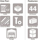 Everyday Strong Soak Proof Microwave Safe Disposable Paper Plates 10 in 50 Count 7.88 USD Free shipping 18 Quart Clear Plastic Storage Bin Container Tote Box with Blue HI-RISE Lid 10.31 USD Free shipping 80-Quart Stackable Storage Bin with Latching Lid Plastic Container Organizer US 24.66 USD Free shipping Canned Chicken and Dumplings with White & Dark Chicken Meat 10.5 oz Can 8 Pack 21.21 USD Free shipping Certified Gluten Free Sugar & Honey Powder Blend 340 Servings 5100 Calories 30.98 USD Free shipping Buttermilk Pancake Mix 3 lbs 4 oz No. 10 Can 32 Servings for Home Shelf-Stable 20.78 USD Free shipping Koi's Choice Pond Fish Food Floating Pellets for All Seasons 3 lb 21.02 USD Free shipping 5,100 Calories 340 Servings Sugar & Honey Powder Blend Certified Gluten Free US 30.98 USD Free shipping 1.5 Gallon Trash Can Plastic Round Step Bathroom Trash Can for Home Dorm Room US 19.13 USD Free shipping 6 Pack New England Clam Chowder Soup Rich & Hearty Canned Soup Gluten Free US 22.01 USD Free shipping 1PC 5" Stainless Steel Griddle Scraper BBQ Grill Tools for Outdoor Camping party 15.33 USD Free shipping Churu Creamy Lickable Wet Cat Treats 0.5 oz 20 Tubes Tuna Variety Grain-Free US 16.9 USD Free shipping About this item HIGH QUALITY Rugged, high impact polystyrene plastic frame and 44 drawers. Large Drawer Size-6 x 4-9/16 x 2-3/16 inches. Small Drawer Size-6 x 2-7/32 x 1-9/16 inches STACK OR WALL MOUNT Cabinets stack securely and can also be wall mounted using keyhole slots molded into the back of the cabinet. GREAT FOR– Storing and organizing classroom or office supplies, crafts, bead organizer, art supply storage, or sewing supplies, hardware, lego and small toy storage, fishing gear and more DIVIDABLE DRAWERS 8 small drawer dividers, 4 large drawer dividers included and come molded into the back of the cabinet, finger grip drawer pulls provide easy access and rear stop tabs prevent contents from spilling You may also like 12 Piece SAE Crows Foot Wrenc Set 1/2"and 3/8"Drive Chrome-Moly Flare Nut Wrench 58.46 USD Free shipping 1/4HP Utility Pump 1500GPH Portable Submersible Sump Pump for Draining Water US 58.38 USD Free shipping Everyday Strong Soak Proof Microwave Safe Disposable Paper Plates 10 in 50 Count 7.88 USD Free shipping 18 Quart Clear Plastic Storage Bin Container Tote Box with Blue HI-RISE Lid 10.31 USD Free shipping Deluxe Cat Scratching Post Indoor Cat Tower Tree Post with Arch Rubber Massager 27.67 USD Free shipping Cats Breeze Non Clumping Cat Litter Pellets Low Dust Odor Control 3.5lb Pouch 27.53 USD Free shipping Halloween Earthenware Coffin Shaped Serving Tray 12.12"x 7.04" Party Tableware 15.32 USD Free shipping Dehydrated Diced Red & Green Bell Peppers 1 lb 4 oz No. 10 Can 1,695 Calories US 26.13 USD Free shipping 20 Inch Commercial 3-Speed High Velocity Heavy Duty Metal Industrial Floor Fans 84.49 USD Free shipping Clean Paws Multi-Cat Scented Clumping Litter with the Power of Febreze 22.5 lbs 26.97 USD Free shipping 138W Air Mover Carpet Dryer 3 Speed Floor Blower Fan Stackable for Water Damage 76.59 USD Free shipping US 3-Shelf Bookcase Adjustable Shelves Storage Organizer Office Shelving White 31.1 USD Free shipping