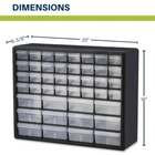 You may also like 2 in 1 Hot Air Rework Soldering Iron Station W/ Digital Temperature Correction 123.96 USD Free shipping 1.5 Gallon Betta Aquarium Starter Kit W/ LED Light Hanging Filter Glass Tank New 43.57 USD Free shipping Mesh Desktop Organizer 5 Sorter 3 Tray Steel Storage Office Home Classroom New 57.29 USD Free shipping Kink Resistant Garden Hose 5/8 inch x 50 ft Heavy Duty Flexible Durable Hose New 37.87 USD Free shipping Long Lasting Chewy Dog Treats Real Meat Flavor Tiny Dogs 60 Count 35.4oz New 23.37 USD Free shipping Wooden Dining Bench Solid Seat Kitchen Living Room 51in Elegant Comfortable New 139.62 USD Free shipping Skateboard Wall Mount Storage Ski Rack Horizontal Longboard Hanger Holder New 59.22 USD Free shipping Poultry Scratch Grains Supplement 40 lb Bag High Energy Protein Chickens Turkeys 17.31 USD Free shipping Charcuterie & Deviled Eggs On Ice Platter Fresh & Chilled BPA Free 16.5"L x 11"W 50.96 USD Free shipping Machine Washable Floral Area Rug Non-Slip Soft Low-Pile Stain Resistant Home Use 55.09 USD Free shipping Multilevel Cat Tree Activity Center W/ Scratching Posts Hammock Fun House New 90.79 USD Free shipping 20000mAh Portable Air Compressor 150PSI Cordless Electric Tire Inflator New 68.85 USD Free shipping About this item HEAVY DUTY CABINET WITH 44 DRAWERS: The 44-drawer small storage cabinet is made in the U. S. A. from rugged, high-impact plastic and measures 20" W x 6" D x 16" H; Organizer drawers - 6" x 4-1/2" x 2-3/16" (large); 6" x 2-1/4" x 1-5/8" (small) GARAGE ORGANIZATION: The small parts organizer is great for garages and workshops for both homeowners and businesses; The plastic storage drawers can be used as tool box, screw organizer or for battery storage; Keep nails and other small parts accessible CLASSROOM ESSENTIALS: Teachers can use the stackable storage drawers for classroom organization; Use it as a teacher toolbox, art supply storage organizer, craft storage cabinet for scrapbook supplies, and more HOME STORAGE AND ORGANIZATION: This plastic storage cabinet offers many uses around the home; It can be a lego storage organizer, craft organizer, or sticker organizer; Use it for makeup storage and organization or for medicine and first aid supplies FEATURES: Stack cabinets securely or use keyhole slots to mount for wall storage; Finger-grip drawer pulls provide easy access; Rear stop tabs prevent contents from spilling; Drawer dividers are included and molded into the back of the cabinet Color Red Material Plastic, Polystyrene Frame Material Plastic Brand Akro-Mils Product Dimensions 6"D x 20"W x 16"H You may also like Electric Heated Blanket Faux Fur 4 Heat Levels 3 Hour Auto Off Machine Washable 59.2 USD Free shipping Power Tool Organizer Wall Mount Charging Station Garage Storage Rack Heavy Duty 86.77 USD Free shipping Outdoor Solar Garden Lights 4 Pack Color Changing Waterproof Flower Decoration 44.16 USD Free shipping Wheat Straw Dinnerware 4 Set 24 Pcs Unbreakable Lightweight Dishwasher Safe New 44.16 USD Free shipping Wooden Dining Bench Solid Seat Kitchen Living Room 51in Elegant Comfortable New 139.62 USD Free shipping Pro Fry Immersion Element Deep Fryer Silver Stainless Steel Spatter-shield Cover 86.77 USD Free shipping 3-Tier Shoe Rack Storage Bench Entryway Organizer Durable Metal Rustic Design US 75.75 USD Free shipping Expandable Softside Carry On Spinner Luggage Ergonomic Grip Ball Wheels Travel 107.45 USD Free shipping 7 Tier Wood Plant Stand W/ 14 Potted Shelves Load 600 lbs Eco-Friendly Assembly 78.66 USD Free shipping Acrylic Coffee Organizer Station W/ Handles K-Cup Creamer Syrup Condiments New 44.73 USD Free shipping Non-GMO Quail Layer Feed 26% Fortified Nutrition Healthy Egg Production 40lb New 96.41 USD Free shipping L Shaped Gaming Desk W/ Power Outlets Reversible Shelves Small Space Office New 110.19 USD Free shipping