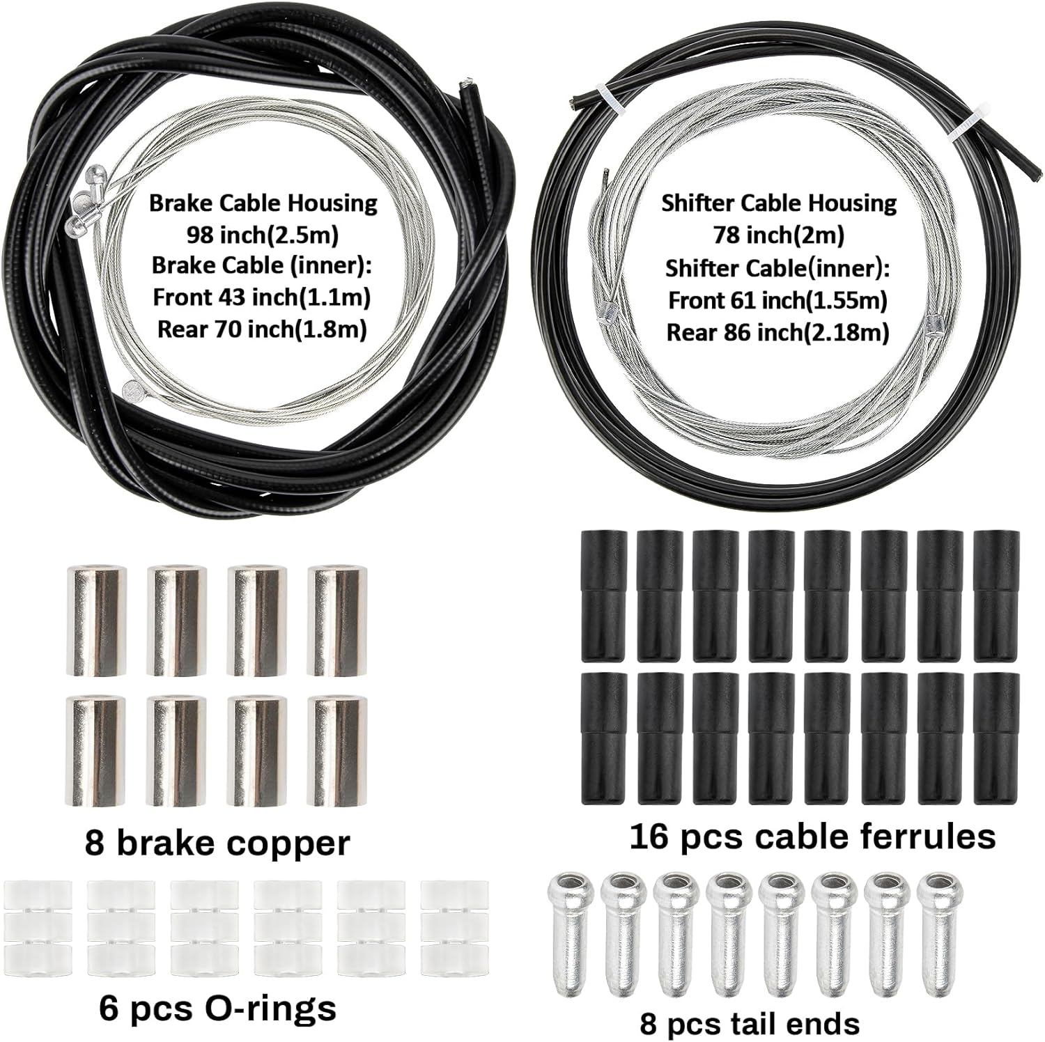 Store New Arrivals Add to Favorite View Feedback Contact 44PCS Bike Brake Cable Kit - Universal Bike Shifter Cable Housing Bicycle Brakes Cable Bike Parts Derailleur Cable Variable Speed Cable Set with Housing, Ferrules, O-Rings Bike Cable End Caps Description Nominal Wall Thickness 1 millimeters Batteries Required? No Color Black Brand RAINFLOW Material Copper Item Weight 0.29 Kilograms Batteries Included? No Item Length 2.5 Meters Outside Diameter 5 Millimeters Manufacturer WX-BikeCables Specific Uses For Product Mountain Biking, Road Cycling, Daily Commute Size 2.5m x 5mm Complete Bike Cable Kit for Smooth Shifting and Braking: This bike brake cable kit includes everything you need for efficient and responsive riding. You will receive 2m transmission cable housing (4mm), 2 inner shifter cables (1.55m front, 2.2m rear), 2.5m brake cable housing (5mm), and 2 inner brake cables (1.1m front, 1.8m rear). With 6 O-rings, 8 tail ends, 8 pcs brake copper sleeves, and 16 cable ferrules, this set provides ample quantity for easy replacements and smooth cycling(Slight quantity variations) Universal With Most Bikes: Designed for universal use, our cables meet the needs of most bicycle brake cables or universal bicycle shifting cables and housings. This includes mountain bikes, road bikes and folding bikes. Whether you're a recreational rider or a cycling enthusiast, this kit has your bike parts needs covered Durable and Wear-Resistant for Long-Term Use: The bicycle brake cable kit is made with wear-resistant materials to ensure durability. The brake and shifter cable offer smooth shifting and reliable braking, helping you tackle even the roughest terrains with confidence. This set ensures that you can enjoy long-lasting performance on your biking adventures Easy Installation and Maintenance: Installing your new bike brake cable and derailleur cable is hassle-free. Follow the instructions, or ask a friend to assist if needed, for a quick and efficient setup. Regular maintenance and timely checks ensure that your bike's braking and shifting mechanisms remain responsive and safe during all your rides Perfect for Mountain Bike Enthusiasts and Daily Riders: Whether you're upgrading your mountain bike parts or refreshing your everyday bicycle setup, this set of bicycle accessories has you covered. It includes everything you need for both front and rear systems, ensuring that you have a reliable ride every time. Ideal for all types of riders, from daily commuters to off-road adventurers Upgrade your bike's performance with this complete bike brake cable kit, designed to meet the needs of all cycling enthusiasts. Whether you're a mountain biker, road cyclist, or a commuter, this set provides everything you need for smooth shifting and braking. From universal bike shifter cable and housing to reliable brake cables, this kit ensures you have the right components for any cycling adventure. Universal Compatibility: The bike brake cable and shifter cable are designed to fit most bike models, including mountain bikes, road bikes, and foldable bikes. Durable and Wear-Resistant: Built with durability in mind, this bicycle brake cable kit features high-quality materials that ensure long-lasting performance. The brake and derailleur cable resist wear and tear, allowing you to enjoy reliable braking and smooth gear changes over countless miles. Perfect for handling rugged terrains and everyday rides alike. Easy to Install and Adjust: Even if you're not an expert, this kit makes installation simple. Follow the step-by-step instructions or get help from a friend, and you'll have your bike's brake and shifter systems running smoothly in no time. Regular checks and maintenance will keep the bike brake cable kit performing at its best Designed for All Cyclists: Whether you're a weekend warrior or a daily commuter, this set of bicycle accessories is perfect for any cyclist looking to improve their bike's performance. From routine maintenance to full upgrades, the mountain bike parts and shifter cables included in this kit provide the ultimate flexibility for riders of all levels. Versatility and Quality: This comprehensive kit is packed with features to enhance your biking experience, offering smooth, reliable performance for every type of cyclist. Due to manual counting and packaging by workers, slight quantity variations may exist, but our products are high-quality and affordably priced—we appreciate your understanding! ABOUT US We offer the best prices around on high quality products. Our E-store includes media such as books, movies, music and games while offering electronics, toys, sporting apparel, clothing, tools, general home, garden items and more. SHIPPING We are always working hard to ensure your package arrives as soon as possible. Please understand that some factors like weather, high postal traffic, and the performance of shipping companies are outside of our control. We offer free shipping to the lower 48 states and ship within 2 business days of payment, usually sooner. We do not accept P.O. Boxes. Please provide a physical address. RETURNS We offer a 30-Day Return Policy on items which you are not completely satisfied with. You have the option for a full-refund or an exchange of the item. No returns are available on items shipped outside of the USA. PAYMENT We accept PayPal. CONTACT US This page content is yet to come Please ad us to your favorite seller and visit again later Thank You CUSTOMER SATISFACTION We try our very best to make sure every customer is completely satisfied. If there's a problem, message us! We're happy to help.