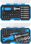 characteristic: It is designed with sockets, screwdriver bits and precision drills of most popular sizes, and is suitable for home, garage, apartment, dormitory, back to school, electronic equipment, glasses and jewelry repair projects. The drill bit and casing are made of High-quality materials, which has durability, extraordinary hardness and excellent toughness and can withstand greater torque. Non- grip and comfortable driver provide users with lasting strength. Three-way ratchet batch handle quickly locks the rotation direction of batch head. This gear is used to tighten the ratchet and center it. This gear is used to manually operate the ratchet to the right. This gear is used to loosen it. All tools are contained in a sturdy transparent cover injection-molded plastic box, which is convenient for storing and identifying tools, keeping tools safe or in the garage, and has good portability. Versatile and reliable, it is very suitable for DIY or professional use. Whether you are engaged maintenance, car maintenance or other projects, this comprehensive package can meet your needs. describe Name: Ratchet screwdriver bit sleeve set Material: Steel+Plastic colour: Blue+Silver Package Contents: 1 x Ratchet screwdriver bit sleeve set Only the above package content, other products are not included. Note: Light reflection and different displays may cause the color of the item in the picture a little different from the real thing. The measurement allowed error is +/- 1-3cm. All tools are contained in a sturdy transparent cover injection-molded plastic box, which is convenient for storing and identifying tools, keeping tools safe or in the garage, and has good portability. The drill bit and casing are made of High-quality materials, which has durability, extraordinary hardness and excellent toughness and can withstand greater torque. Non-slip grip and comfortable driver provide users with lasting strength. Three-way ratchet batch handle quickly locks the rotation direction of batch . This gear is used to tighten the ratchet and center it. This gear is used to manually operate the ratchet to the right. This gear is used to loosen it. characteristic: It is designed with sockets, screwdriver bits and precision drills of most popular sizes, and is suitable for home, garage, apartment, dormitory, back to school, electronic equipment, glasses and jewelry repair projects. Versatile and reliable, it is very suitable for DIY or professional use. Whether you are engaged in home maintenance, car maintenance or other projects, this comprehensive package can meet your needs.