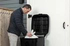 The 45 Gallon Wheeled Heavy Duty Plastic Garbage Can comes with a strongly secured lid attached with a convenient hinge. The attached lid clicks into place, ensuring the lid stays securely closed when not in use. Never worry about losing the lid in windy conditions. The easy grip handle with pass through divided handle design and the rugged wheels makes transporting your trash from the curb and back effortless. This heavy duty trash can is suitable for both indoor and outdoor storage. On Dec 22, 2024 at 17:41:45 PST, seller added the following information: