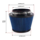 4.5" Inlet Truck Air Filter Dry High Flow Clamp-On Round Cone Air Intake Filter SPECIFICATIONS: Type: Air Filter Material: Plastic + Metal + Non-woven Fabric Inlet Diameter: 114mm / 4.45inch FEATURES: 100% Brand New and Never Used or Installed Increase horsepower, torque and improve the gas mileage. It universally fit for any 114mm / 4.45inch air intake hose. The high flow air filter help engine to draw more cooler air resulting in betterthrottle response & higher explosive horsepower output. It comes with a washable and reusable cone air filter and a clamp. Filter consisted of 2 layers to double the filtration efficiency. [How often should air intake filter be replaced?] It should be inspected once a year or every 15,000 to 30,000 miles, but this can varybased on the car and driving environment. If you often drive through dusty terrain oron unpaved roads, you may need to change it more frequently. PACKAGE INCLUDE: 1 x Air Filter All accessories in the picture are included. NOTE: 1. Please allow 0.5-1 inch difference due to manual measurement. (1 inch=2.54cm) 2. Please check the size measurement and the picture carefully before makingpayment. 3. Due to the difference between different monitors, the picture may not reflect theactual color of the item. Please understand, Thank you. SHIPPING INFORMATION PAYMENT WARRANTY ABOUT US CONTACT US SHIPPING INFORMATION We will only ship this item to buyers by Normal Mail, please confirm your address is correct, and if you want to change the delivery address, just feel free to contact us when you purchase. Usually, we will ship the orders out and upload the tracking number within 1-2 business days(Monday to Saturday from 8:30am-5:30pm) after you complete the payment. PAYMENT We will only accept eBay payment. Please pay using eBay payment ONLY within 7 days from the date of transaction be made. WARRANTY Please inspect your order upon receipt.No damage claims will be honored after 14 days of delivery. All item we sold come with 90 days defective warranty from the date. ABOUT US We are a powerful factory producing auto parts,and we have a professional sales and after-sales team that can provide you with excellent products and services. CONTACT US For any reason you want to contact us,We aim at satisfying every visitor, no matter what kind of situation you meet with, we will be right here to serve you. Please contact our team. If you are happy with the transaction with us, leaving us an ALL-5-STAR positive feedback would be greatly appreciated. Have a good shopping.