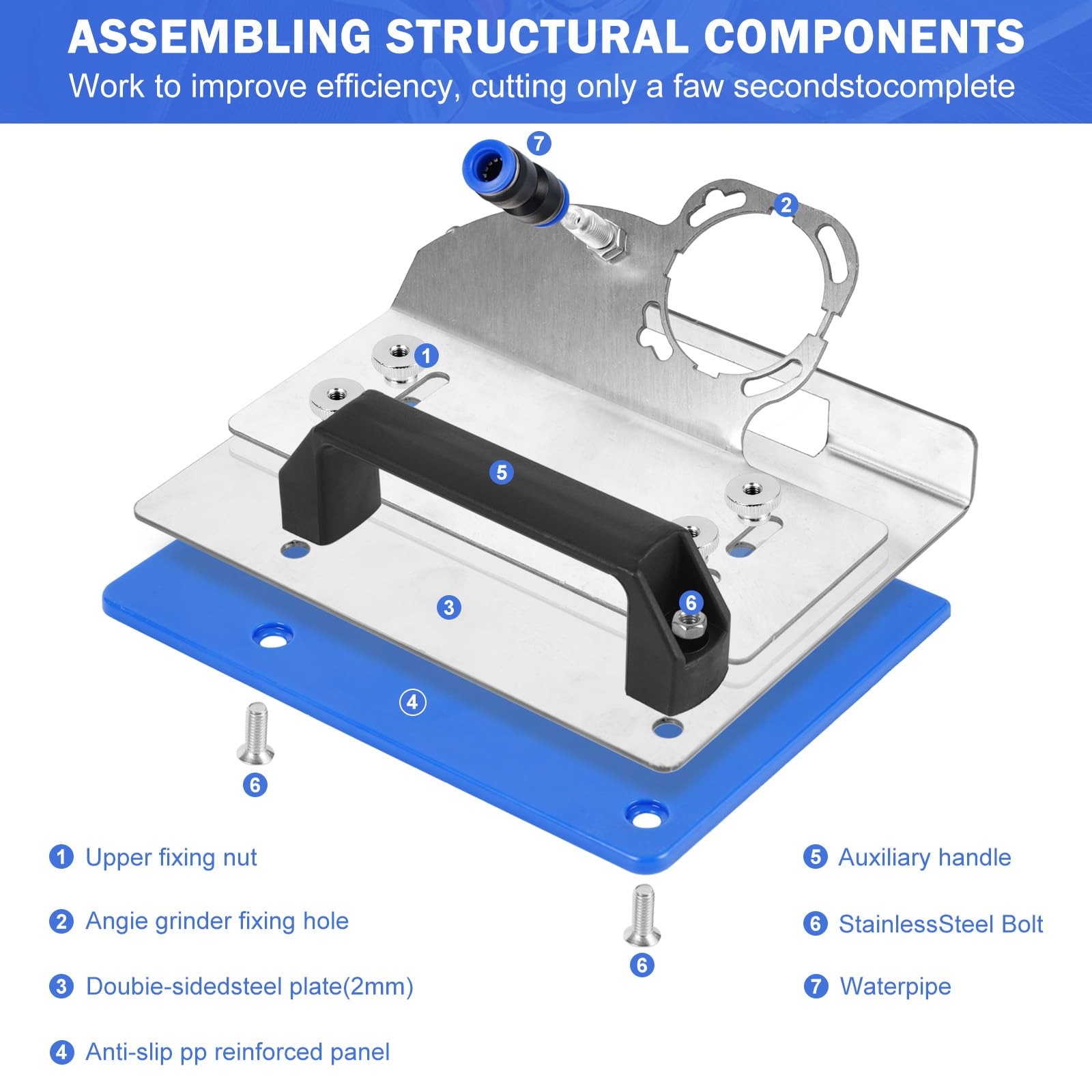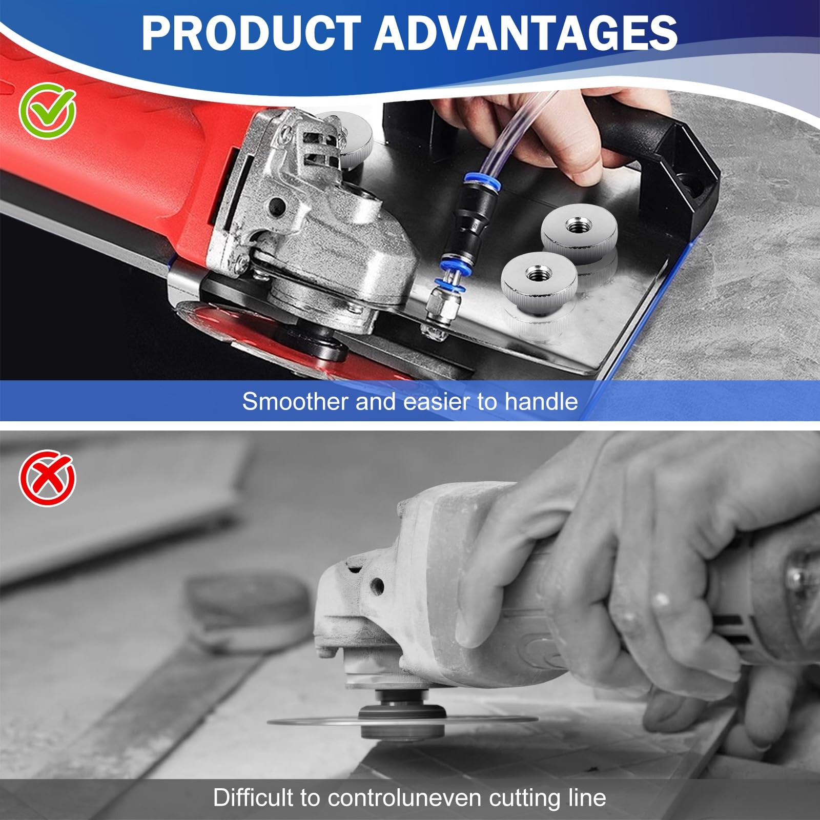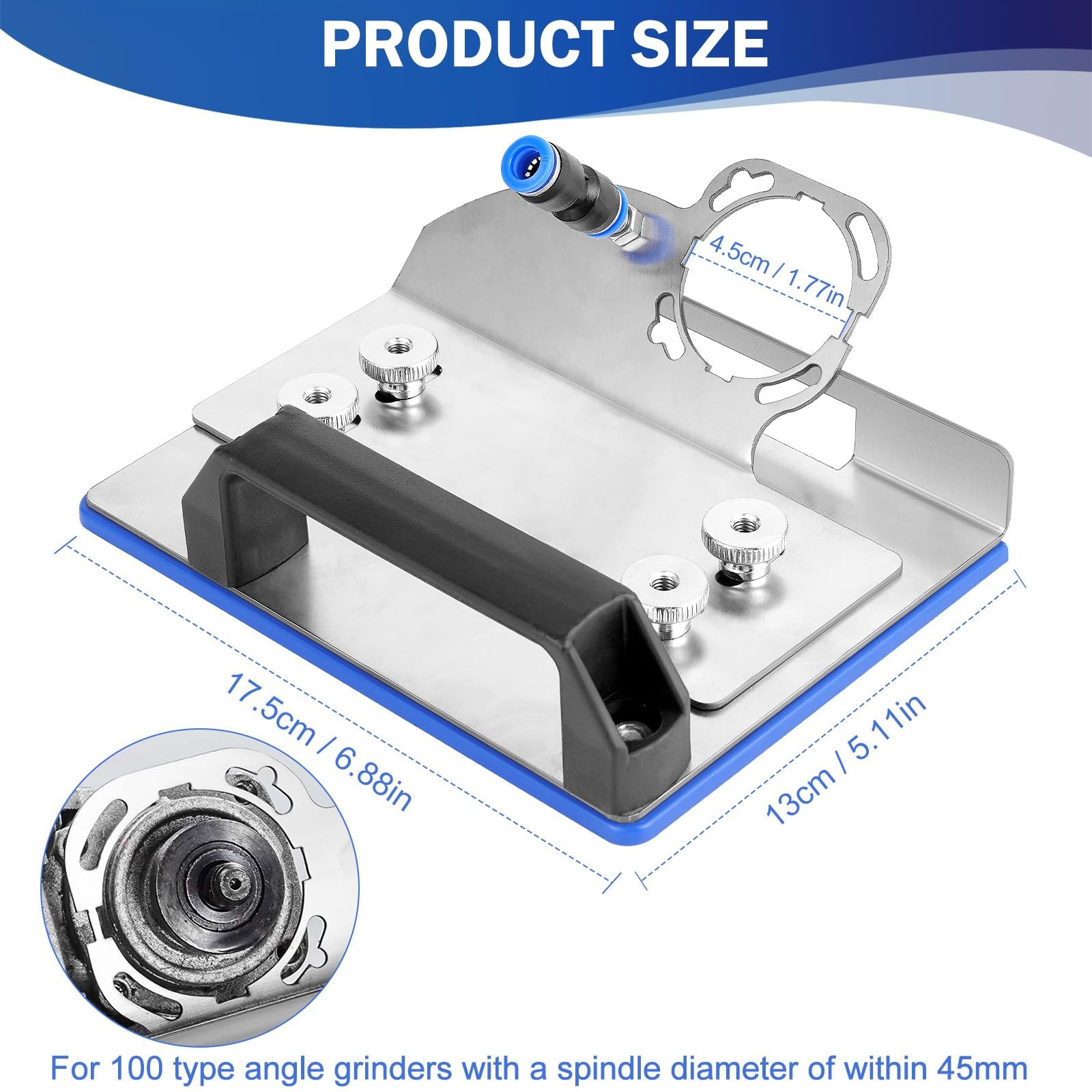 45 degree tile chamfering tool,angle grinder stand for 45° Tile Cutting,Angle Grinder Attachments for 100-Type Angle Grinders With1m water pipe ,gloves,screwdriver Wide compatibility: Effective angle grinder 45 Degree Tile Chamfering Tool Suitable for 100-type angle grinders, with a maximum spindle diameter of 45mm, it can match a variety of common models, safe and stable. Flexible and adjustable: The angle grinder stand 45 ° Chamfer Tool can be adjusted freely to adapt to tiles of different thicknesses, maintain efficient and stable cutting accuracy, and has clear scale lines for easy operation. Sturdy and durable: The 45 degree tile chamfering tool Made of high-quality stainless steel, it is corrosion-resistant and anti-deformation, and a wear-resistant plastic pad is installed at the bottom to avoid scratching tiles. Safe and stable: The fixed hole design firmly locks the angle grinder to reduce vibration, and the 4 locking nuts prevent displacement to ensure operational stability; the handle design enhances cutting direction control. Efficient and portable: this Angle Grinder Stand For 45 Chamfer Cutting Compared with large machine tools, it is lighter and easier to carry, suitable for home decoration or engineering projects, and improves work efficiency. Professional structure: The angle grinder stand design ensures precise cutting, and the attached water pipe connector can cool the saw blade and extend its service life. Rich accessories: This tile chamfering tools sets Contains 1 45° tile chamfering tool , 1m water pipe, 1 glove, and 1 screwdriver to meet various needs. Multi-scenario application: The angle grinder tile cutter tool Suitable for DIY, home decoration and professional tile chamfering projects, providing reliable support.