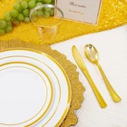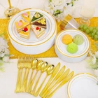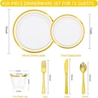 Pattern NO Collection Name Dinnerware set for 75 guests Finish Type Sealed Material Plastic Occasion All Occasions Shape Round Is Dishwasher Safe No About this item Premium Quality and Food-Grade: These disposable dinnerware set is crafted from premium, food-grade, BPA-free plastic, ensuring it is safe, non-toxic, and highly durable. The robust construction prevents cracking, bending, and breaking, even with heavy use Elegant Design for Every Occasion: These party plates with a gold rim scheme adds a touch of elegance and luxury to any event, making your gathering look sophisticated and stylish. The gold-rimmed design gives them a premium appearance, similar to fine porcelain Disposable and Hassle-Free: With these 75 guests plastic dinnerware set of gold plastic plates, cups, knives, forks, and spoons, you can host a party without the worry of cleanup. Simply dispose of the used items after the event, eliminating the need for time-consuming washing Versatile for Any Event: Whether it's a wedding, birthday party, company event, or a simple family meal, this elegant set of plastic plates and plastic silverware will add a touch of class to any occasion. Designed to be equally effective and attractive in both indoor and outdoor settings, it is a versatile choice for any type of gathering Ideal Choice for Party Decoration: WELLIFE heavy-duty party gold plates set add a unique, modern decorative style to your table, meeting the aesthetic requirements of all guests. The gold and white plates are perfect for weddings, parties, dinners, reunions, birthdays, engagements, Valentine's Day, Mother’s Day, and other special anniversaries. Additionally, the gold-rimmed plastic plates are ideal for Thanksgiving, Halloween, and Christmas dinners, elevating any celebration with their luxurious and refined look Pattern NO Collection Name Dinnerware set for 75 guests Finish Type Sealed Product Care Instructions Hand Wash Only, disposable