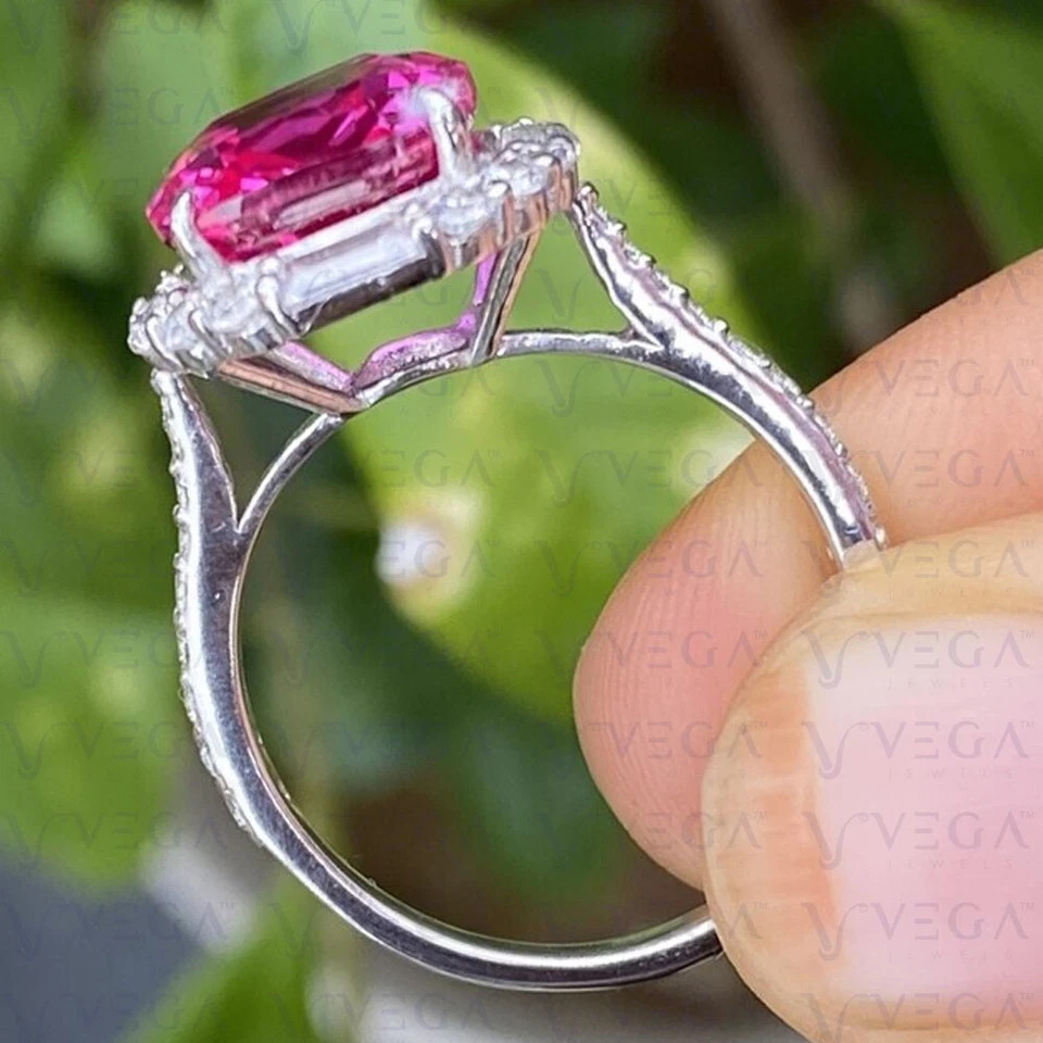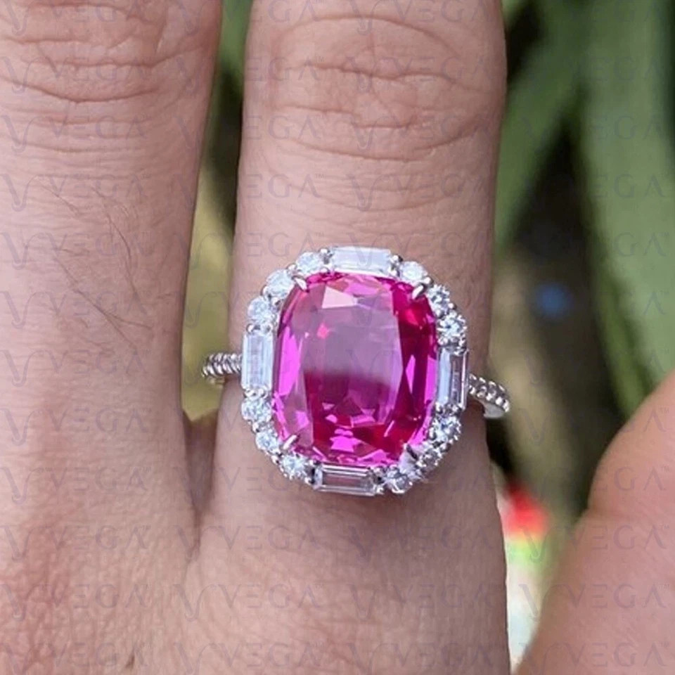 3.75 Ct Cushion Cut Pink Sapphire Diamond Engagement Ring 14K Solid White Gold